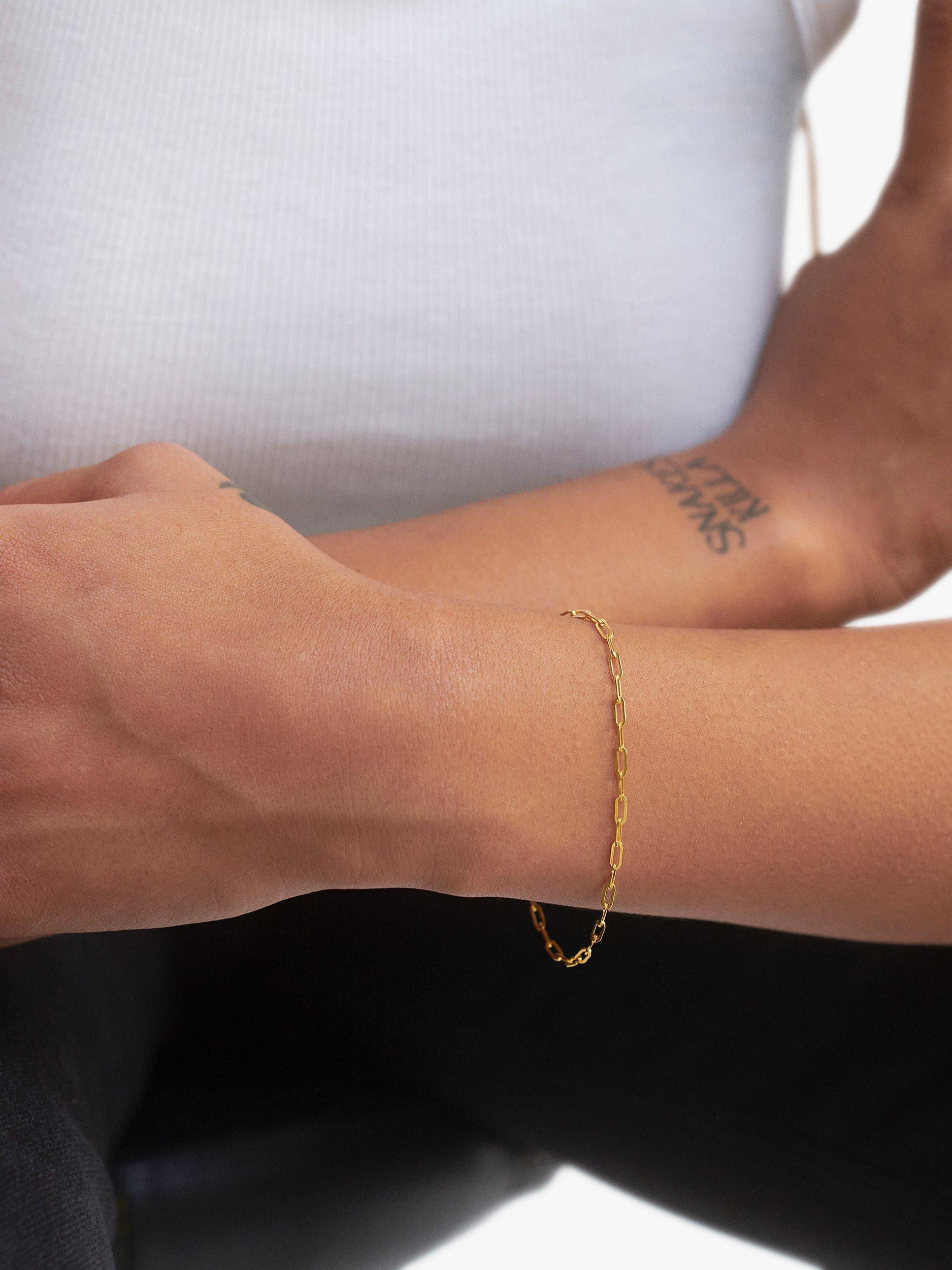 Interlocking in a mini paperclip design, this chain bracelet from Monica Vinader freshens up any jewellery collection in an instant.