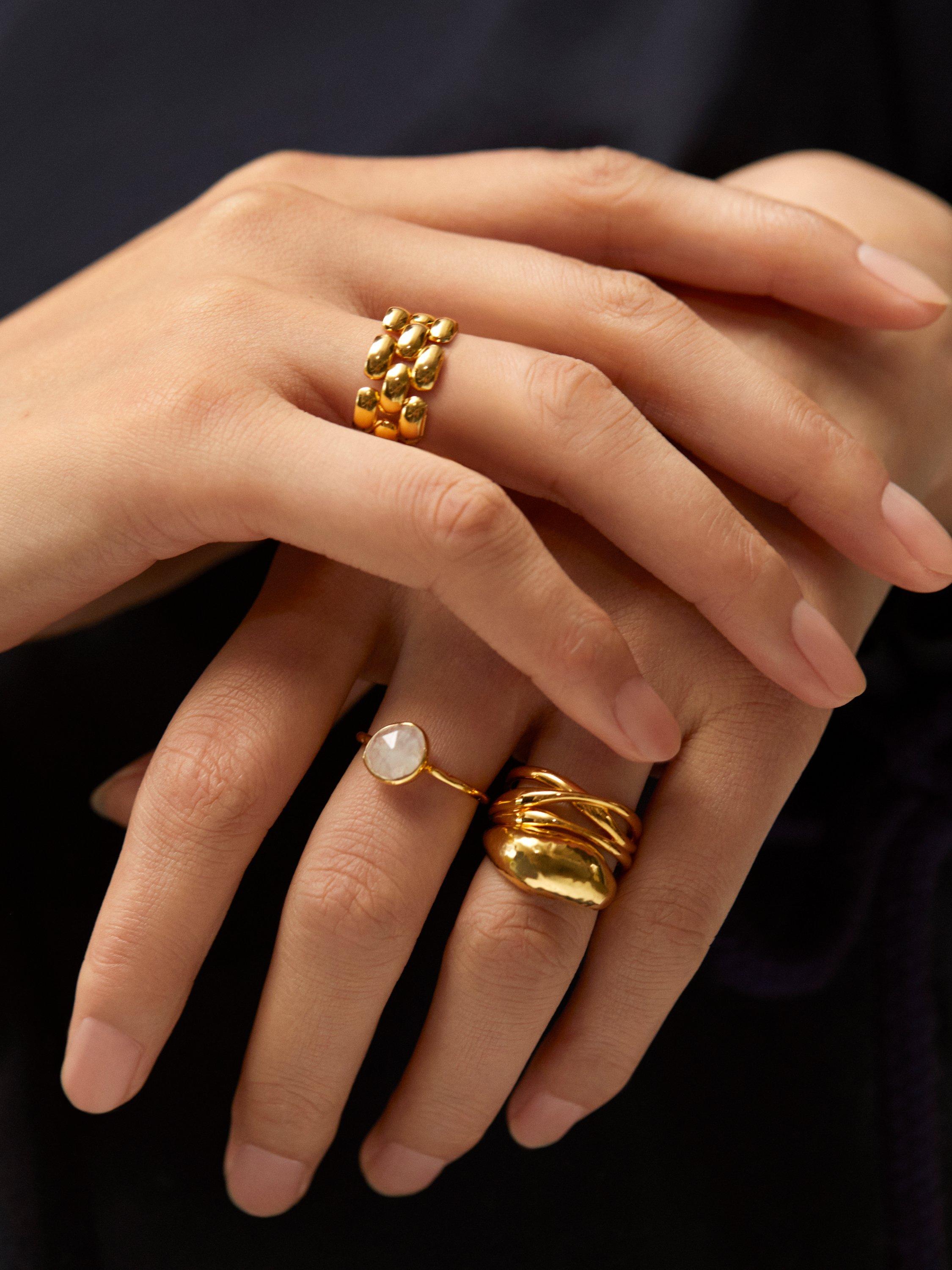 This beautiful Monica Vinader ring is part of the Siren collection. It can be easily worn on its own or stacked with other band rings. The piece features a faceted semi-precious stone in a classic rubover setting.