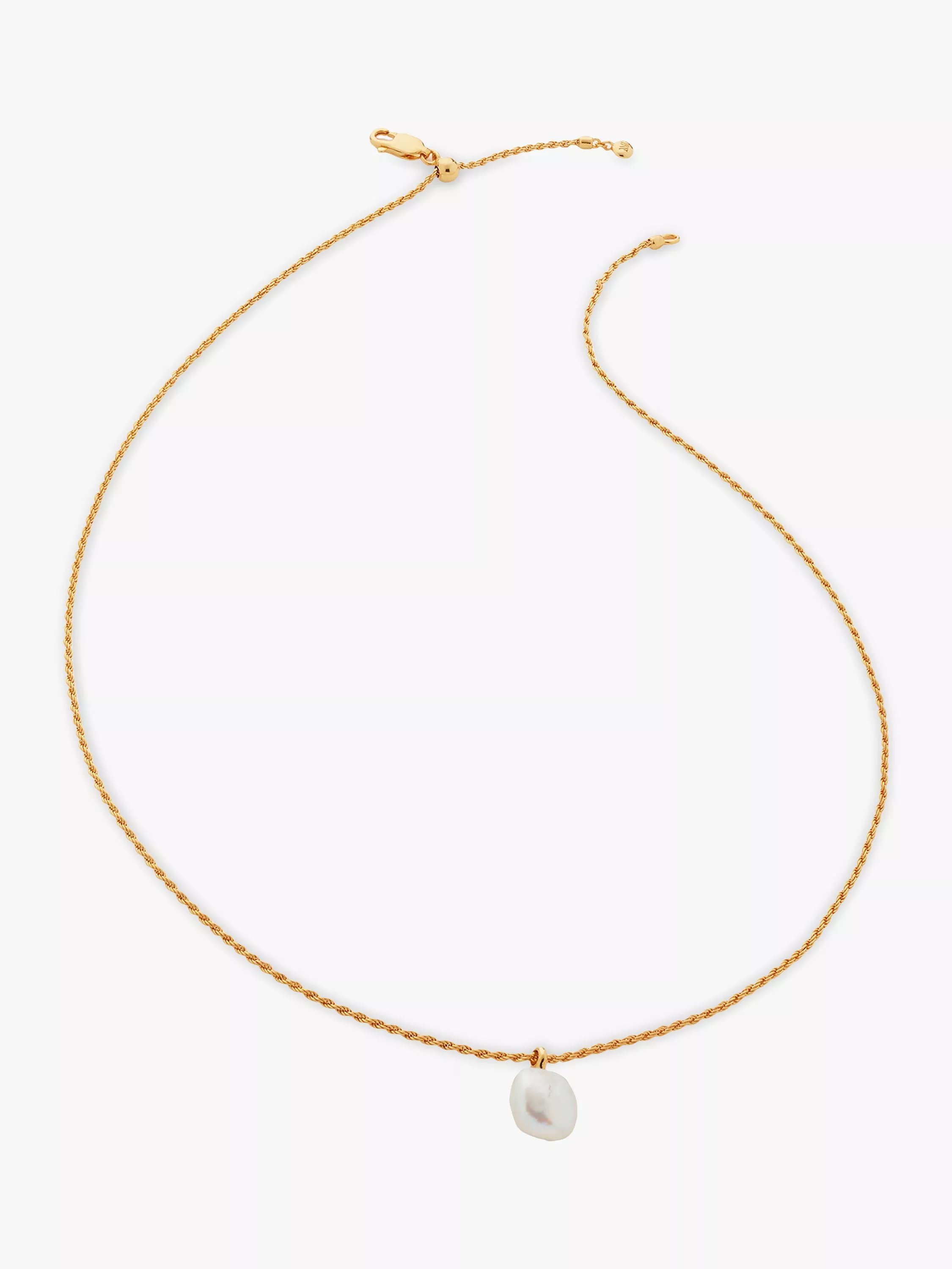 Monica Vinader reinvents the classic pearl necklace with this Nura style. The rope chain has a slidable lobster clasp to provide an adjustable fit. The design comes with an irregular-shaped long pearl pendant for a simple yet elegant finish.