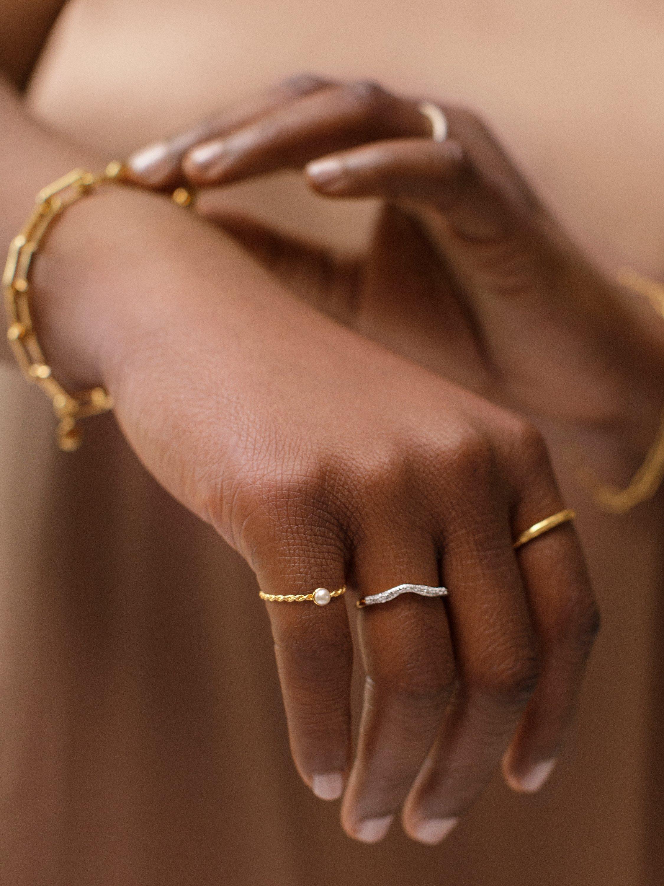 In this ring, 17 diamonds sit on an undulating band, inspired by the Italian Riviera and the beautiful shoreline. Nestle the Riva Diamond Wave amongst other favourites in your ring stack, or wear solo.