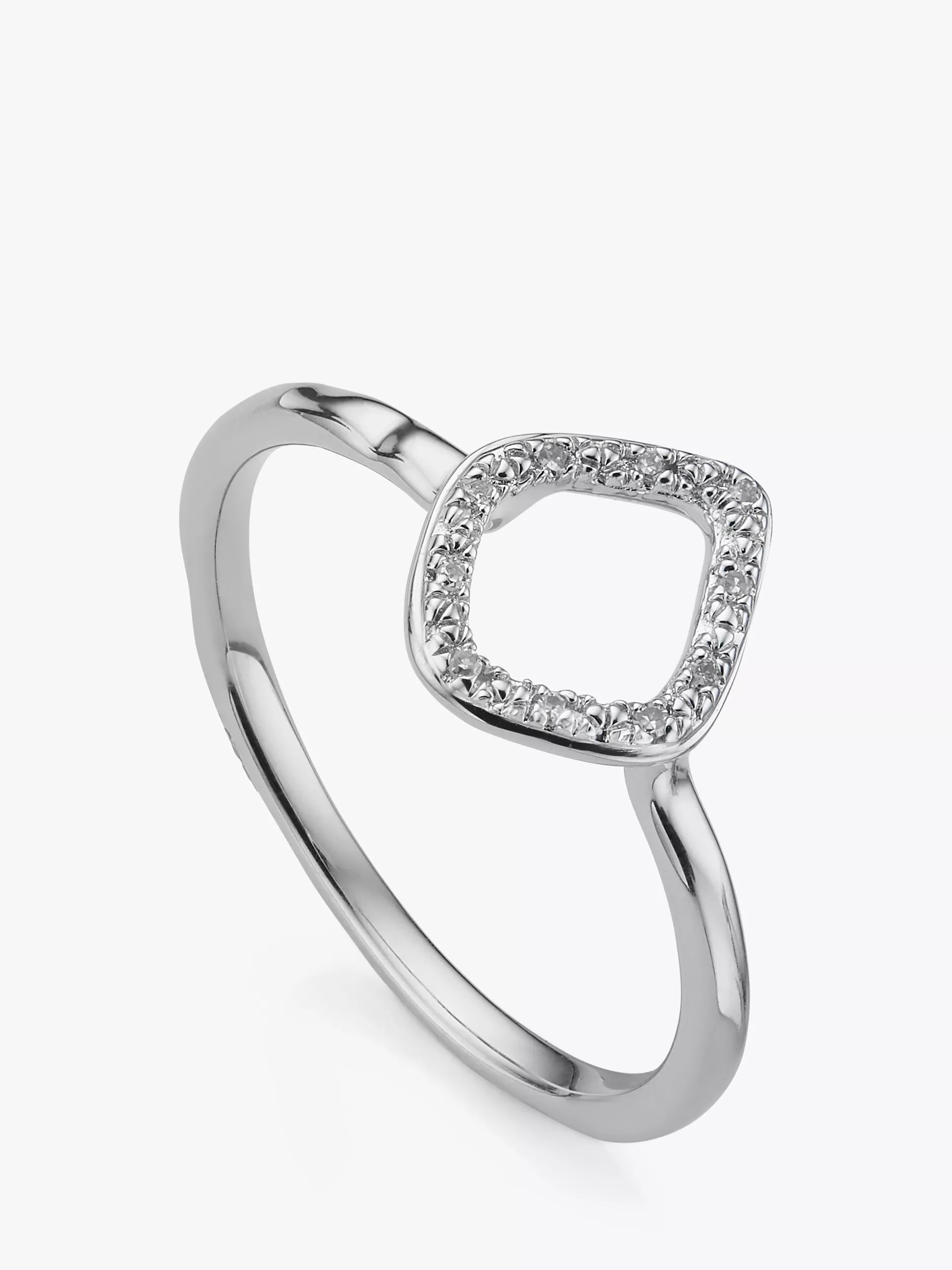 This delicate Monica Vinader ring presents an organically-shaped open element set with ethically-sourced brilliant-cut diamonds. This petite stacking ring is part of the Riva collection, influenced by the Italian Riviera, that reflects objects found along the shore.
