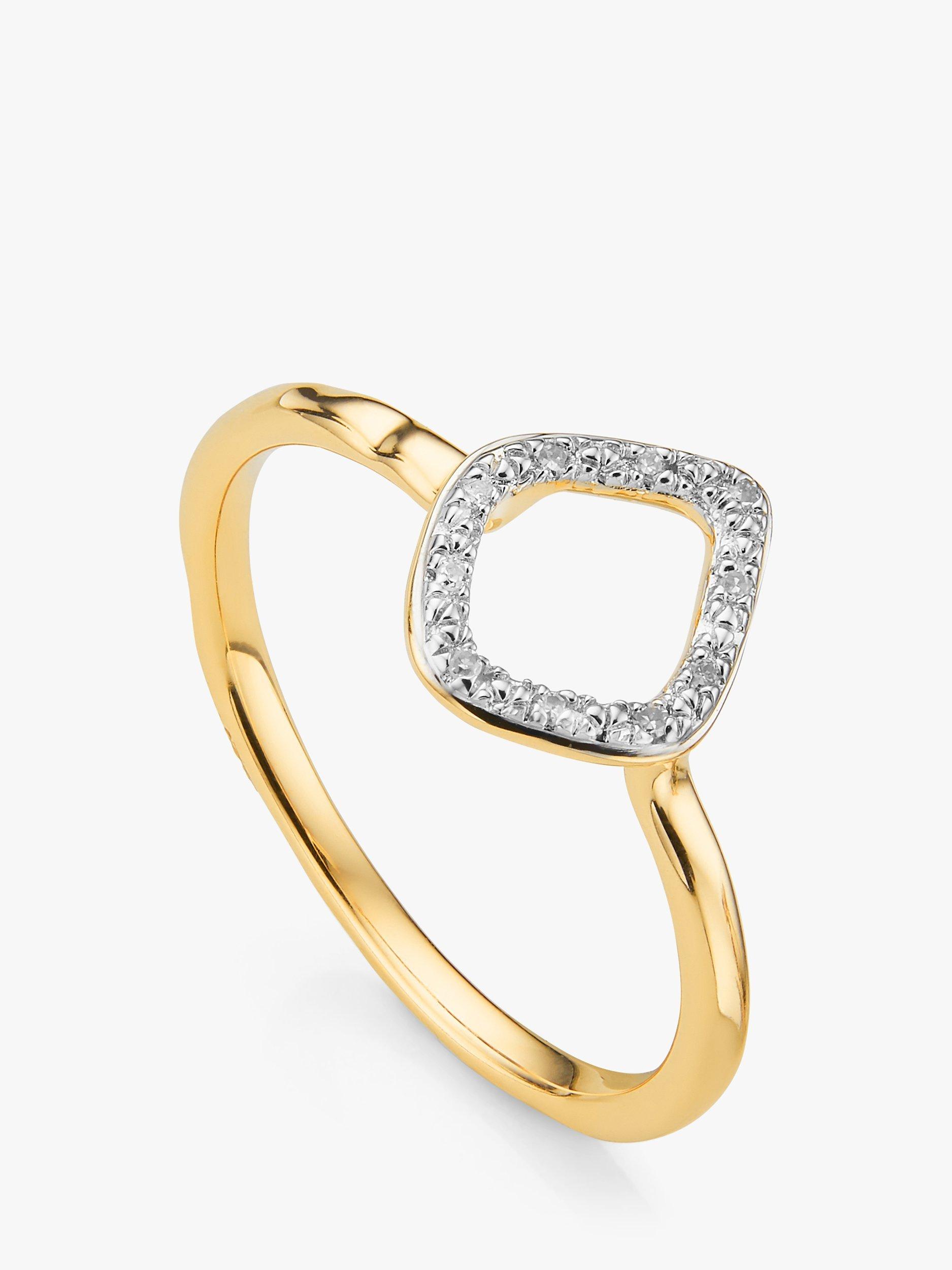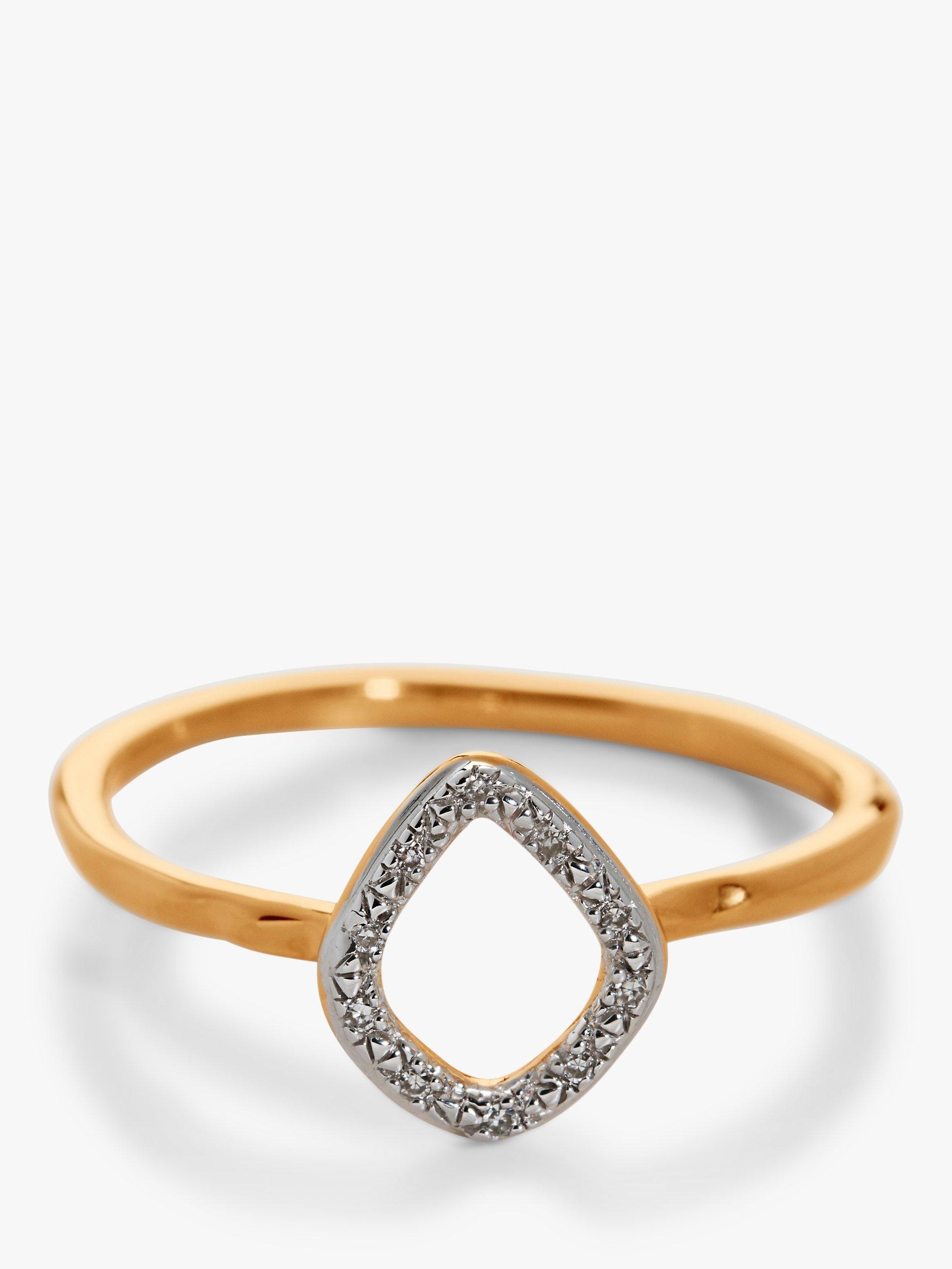 This delicate Monica Vinader ring presents an organically-shaped open element set with ethically-sourced brilliant-cut diamonds. This petite stacking ring is part of the Riva collection, influenced by the Italian Riviera, that reflects objects found along the shore.