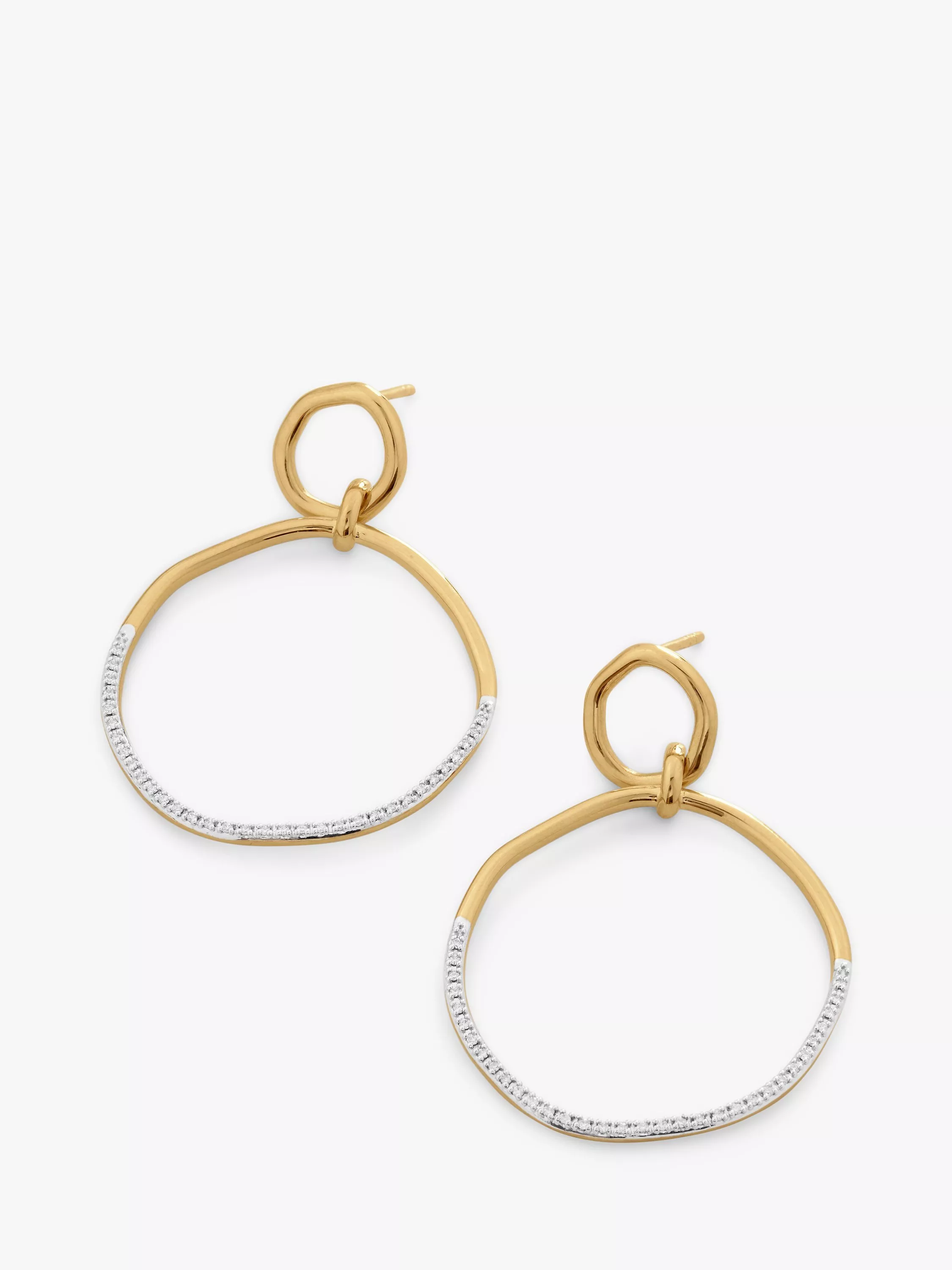 Undulating like ripples on water, these drop earrings are pavé set with diamonds in the larger of two organic circles. Secured with post fittings, they are suitable for pierced ears only.