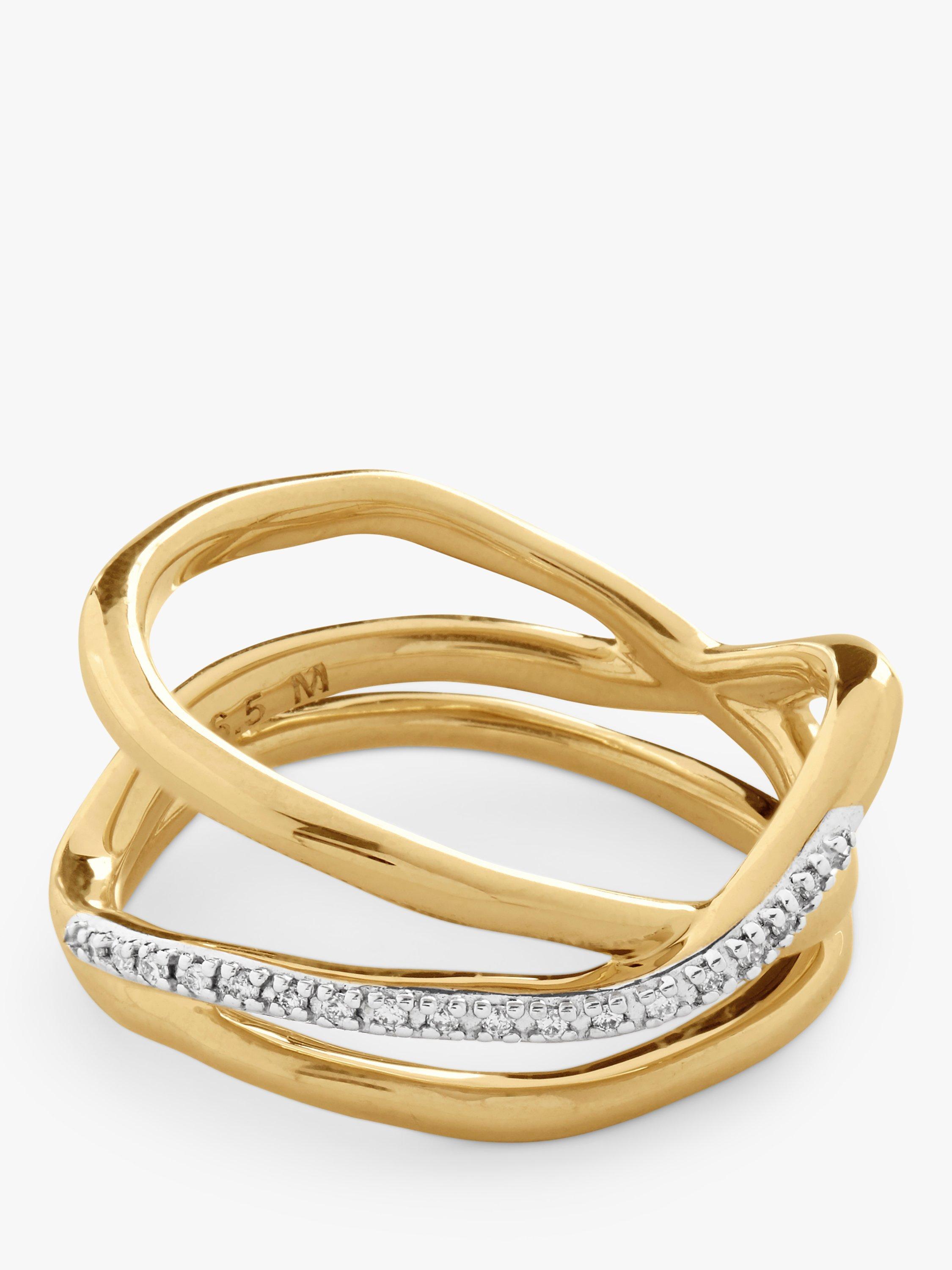 Pre-stacked and ready to go, this ring from Monica Vinadear combines an organic shape with sparkling diamonds for a statement finish.