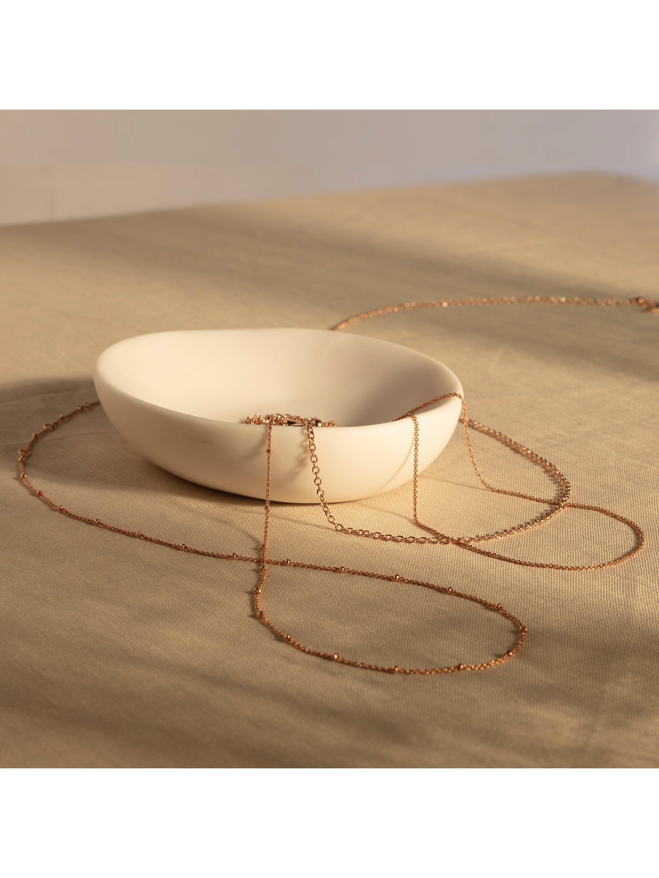 An everyday staple featuring a sliding bead so you can adjust its length. Wear alone, in a stack or add a pendant.