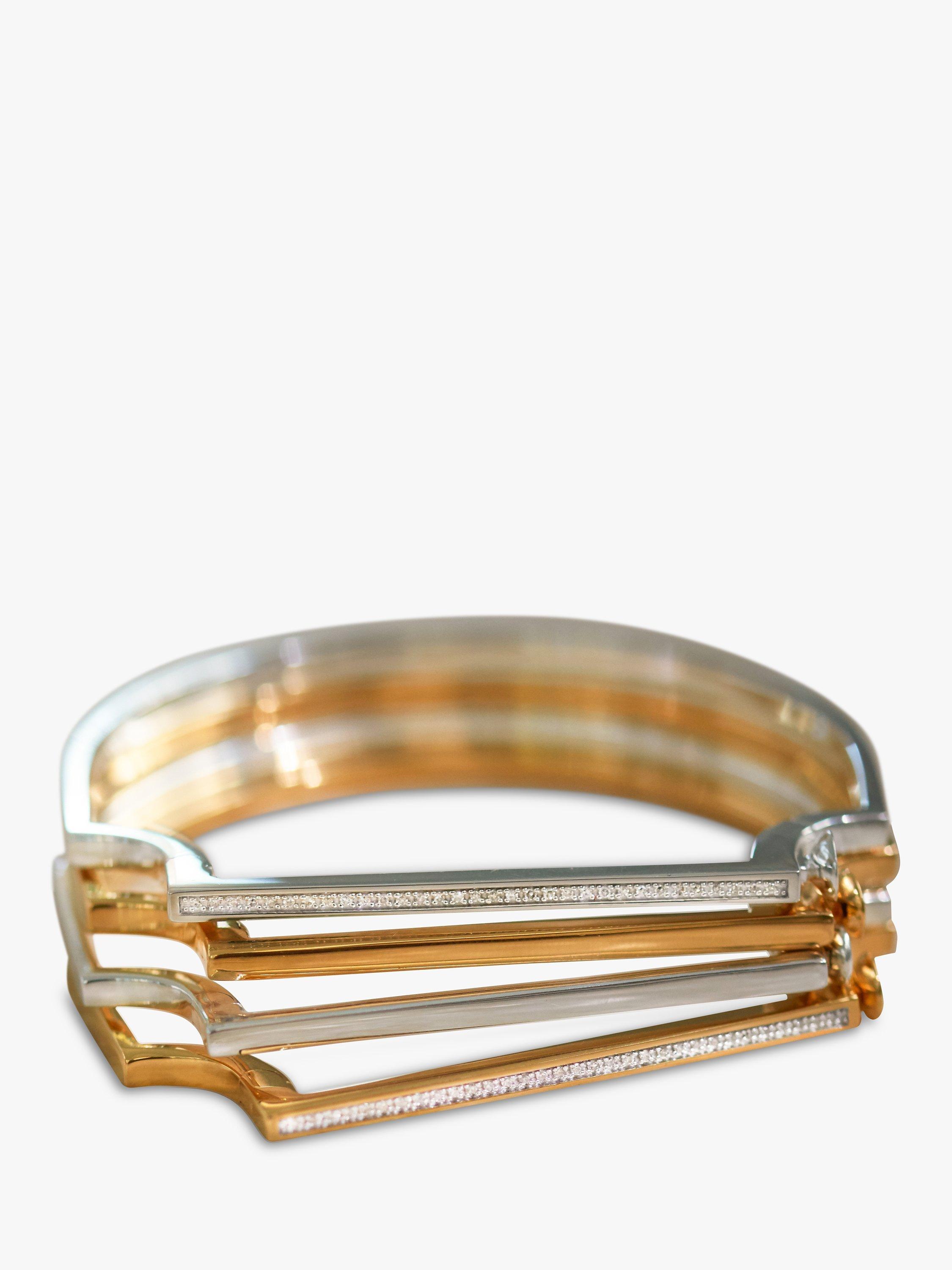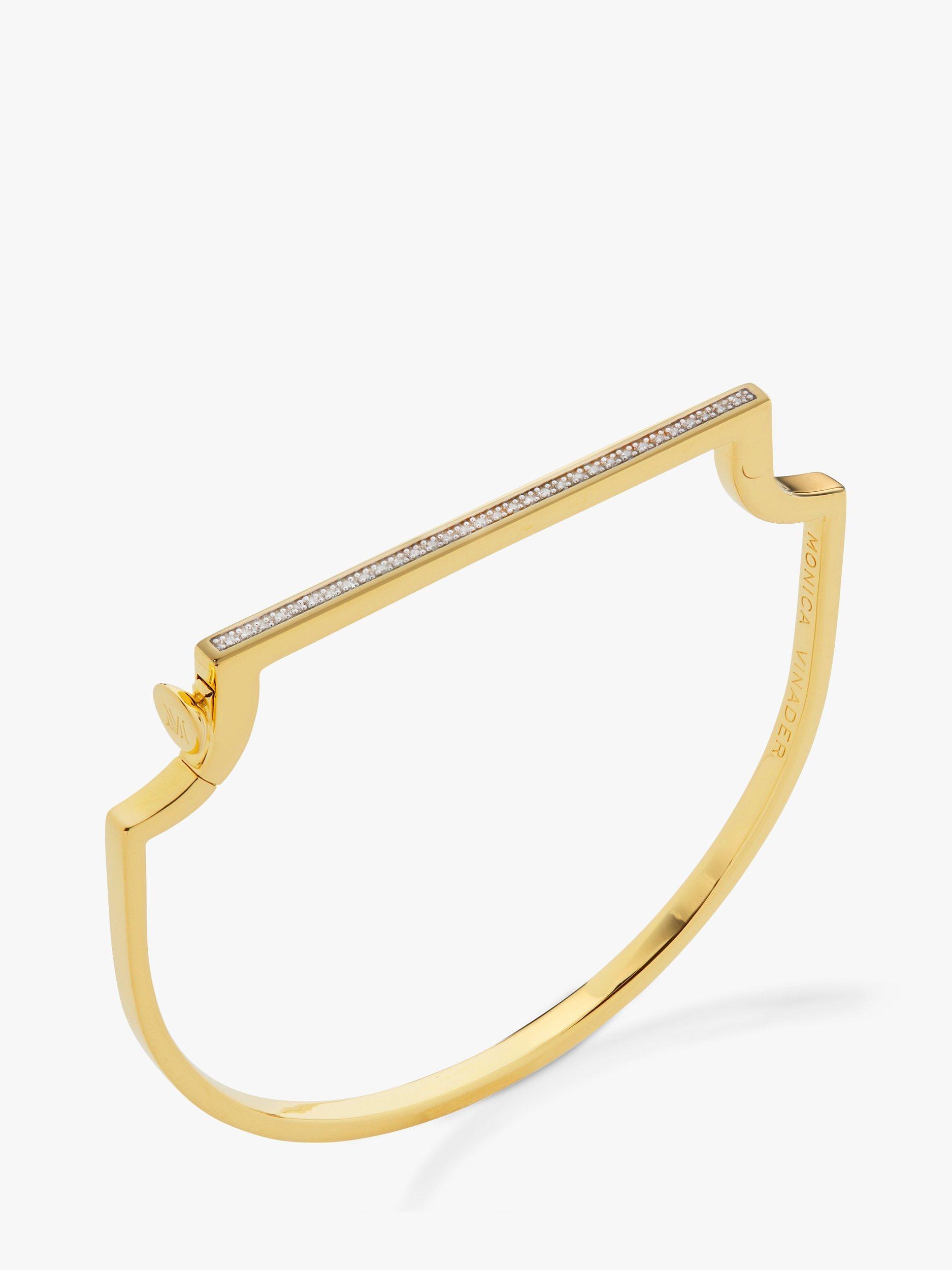 Exuding finesse and elegance, this Monica Vinader bangle showcases the brand's inclination towards contemporary shapes. The design fastens with a clasp and its front bar section is set with brilliant-cut diamonds.