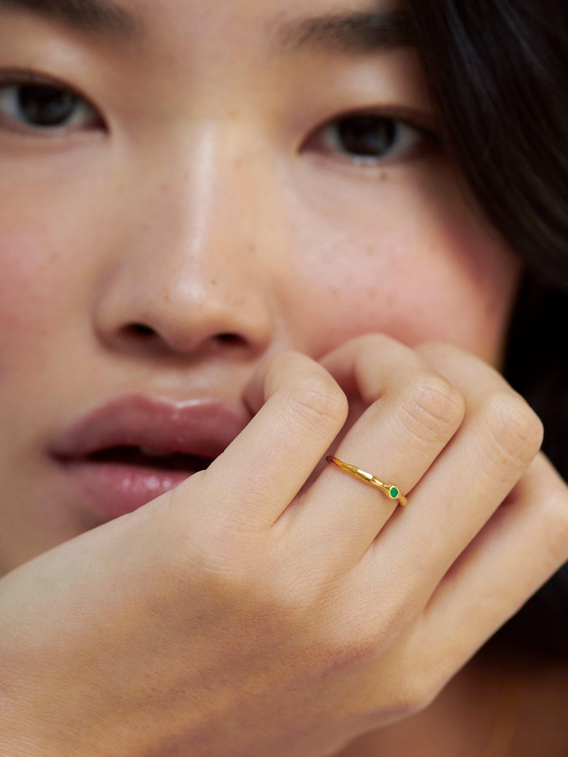 This irregular-shaped ring has plenty of curve appeal. It's set with a single green onyx that adds a bit of luxury to your look.