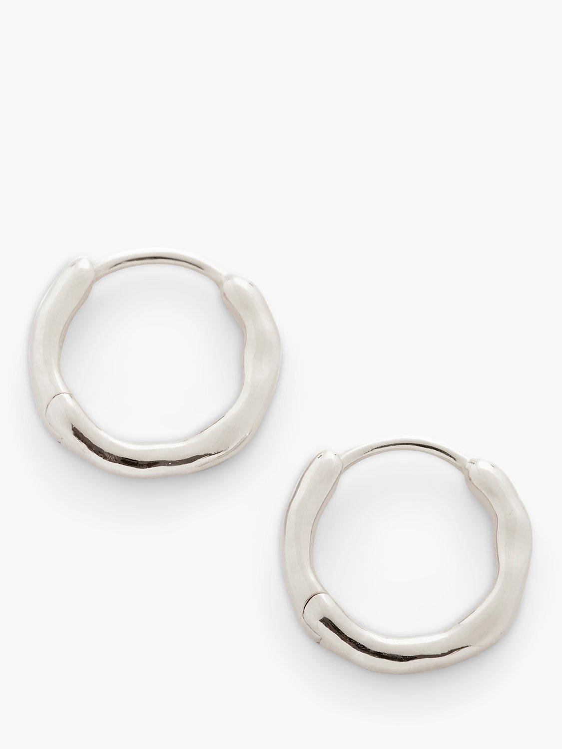 Newness for your ear stack. Textured by hand, this delicate drop huggie has subtly hammered surfaces that radiate light. This is Siren Muse.