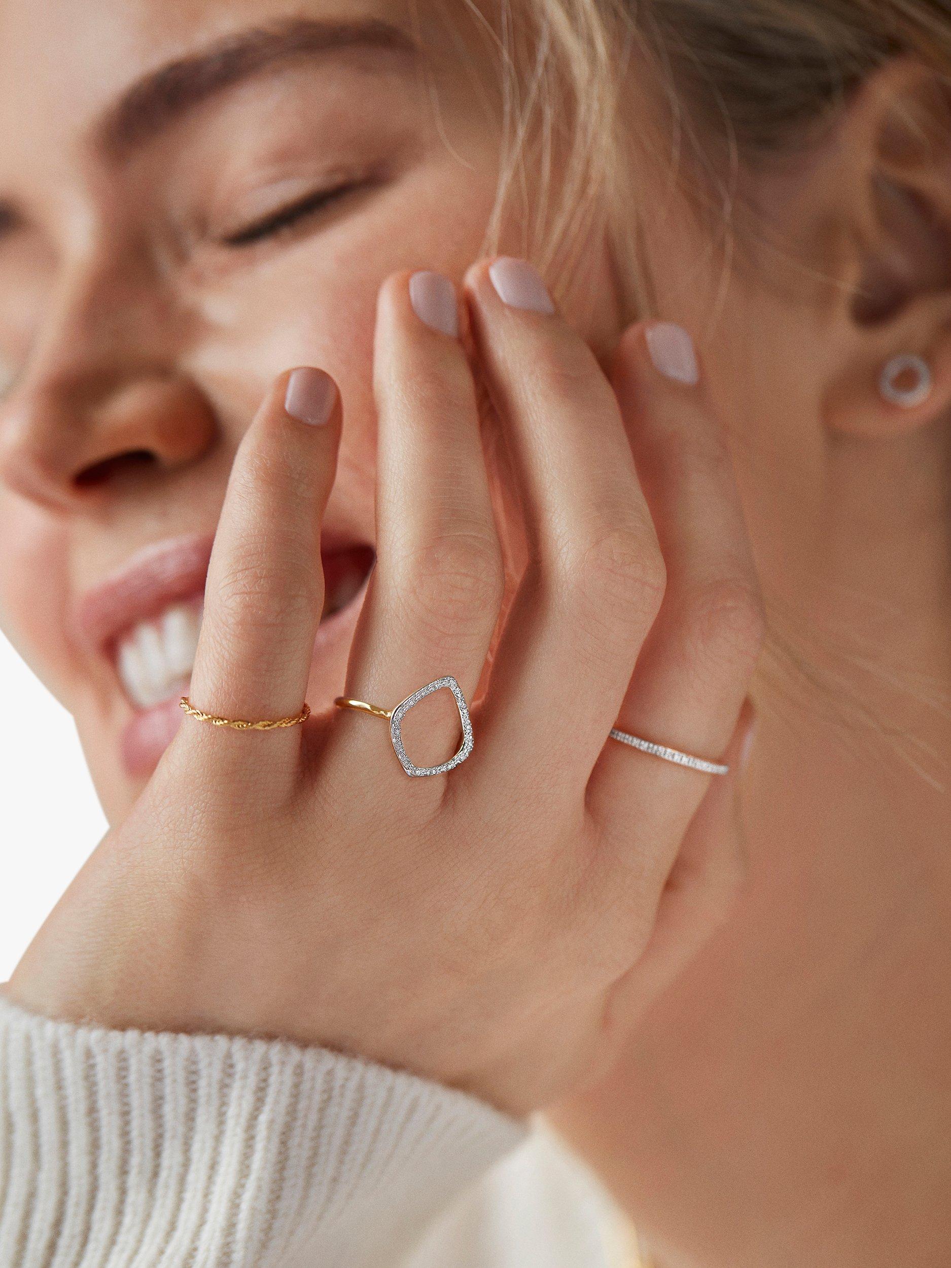 Inspired by the all-time favourite style, this Monica Vinader ring offers a very slim band that is all set with brilliant-cut diamonds. Given the finesse of the ring, it can be worn stacked with a classic wedding band.