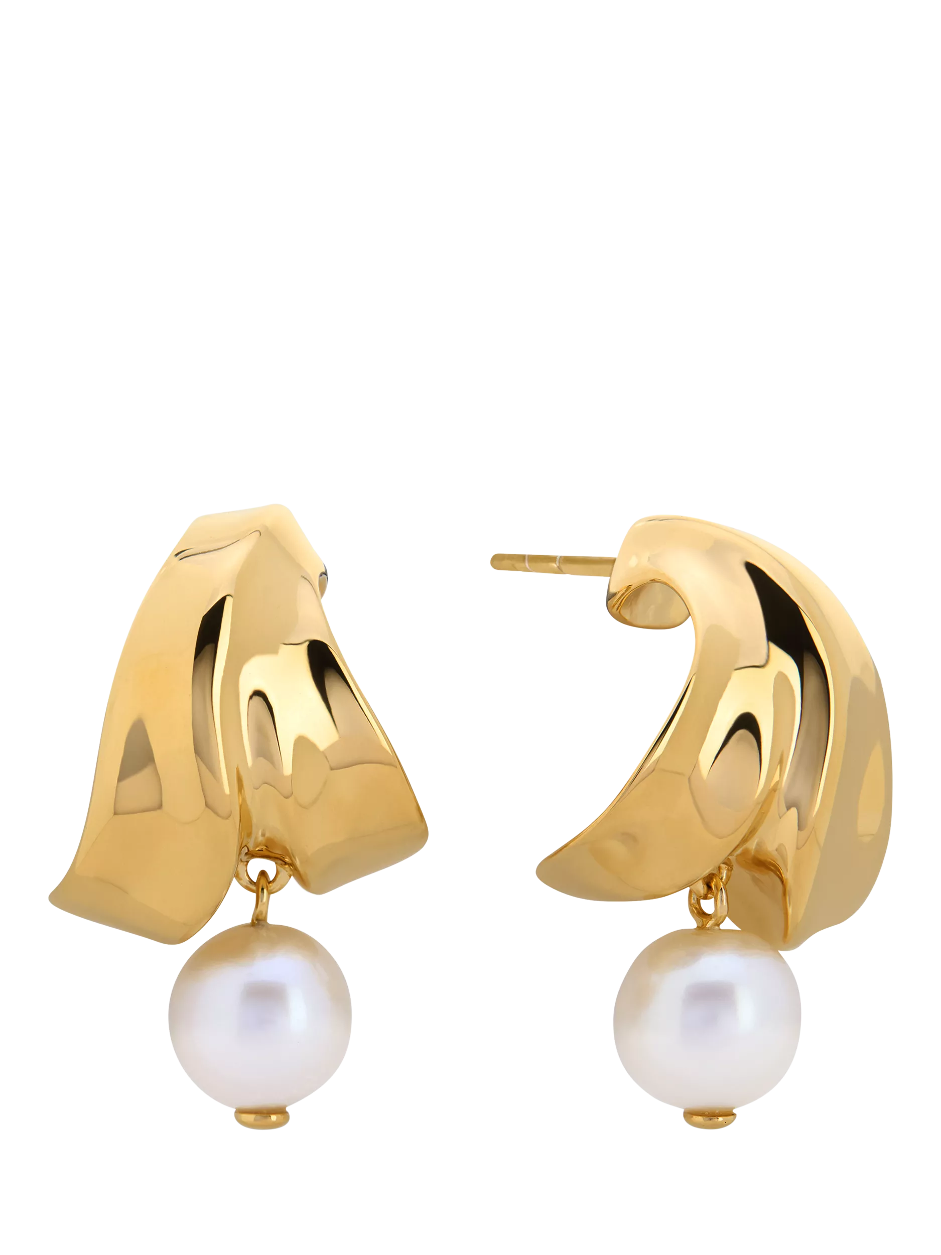 A study in movement. Crafted in 100% recycled 18ct gold vermeil with layered, free-flowing folds, these earrings are designed with high-lustre freshwater pearls.