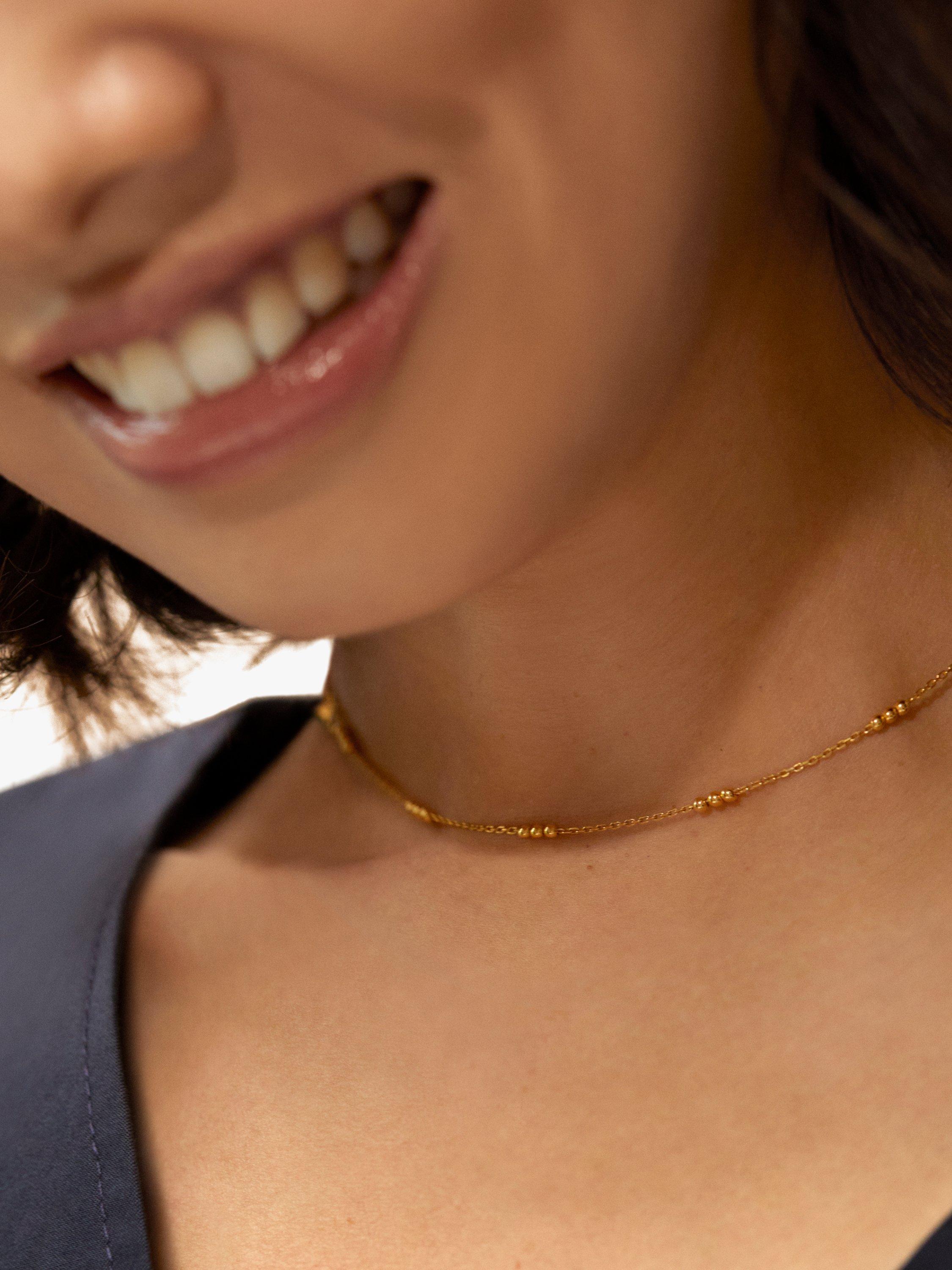 Add a little extra texture to your layering game. This chain necklace from Monica Vinader features dainty trios of beading. Wear solo, with a pendant, or layer on the luxe.