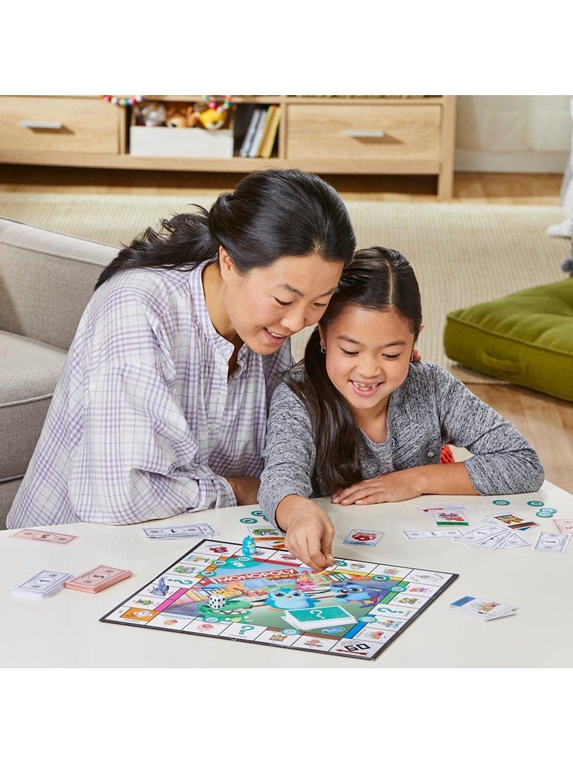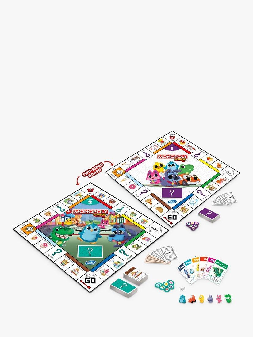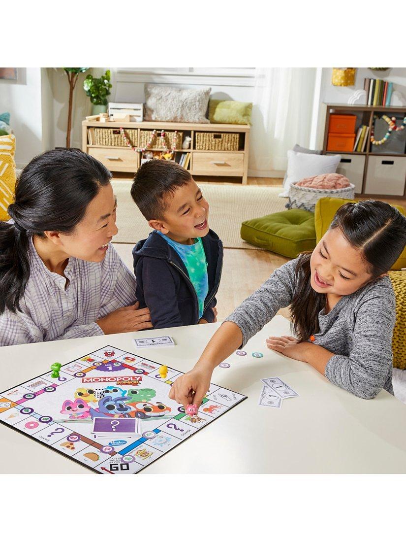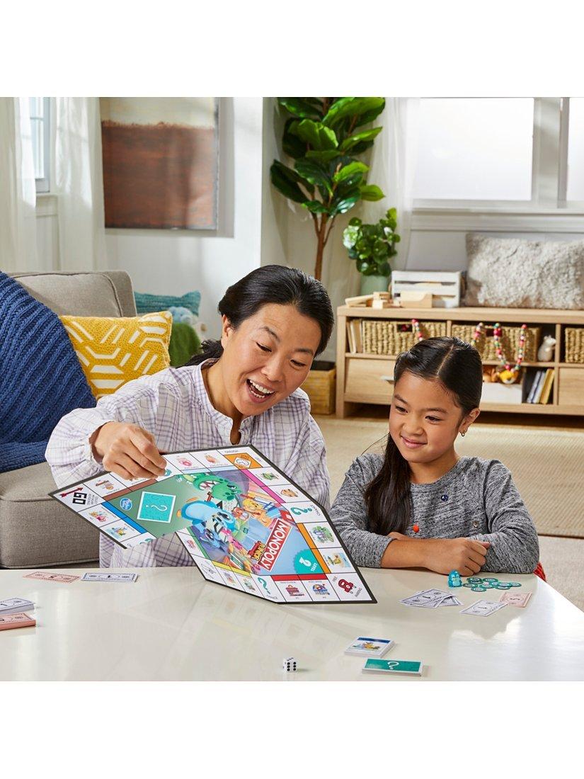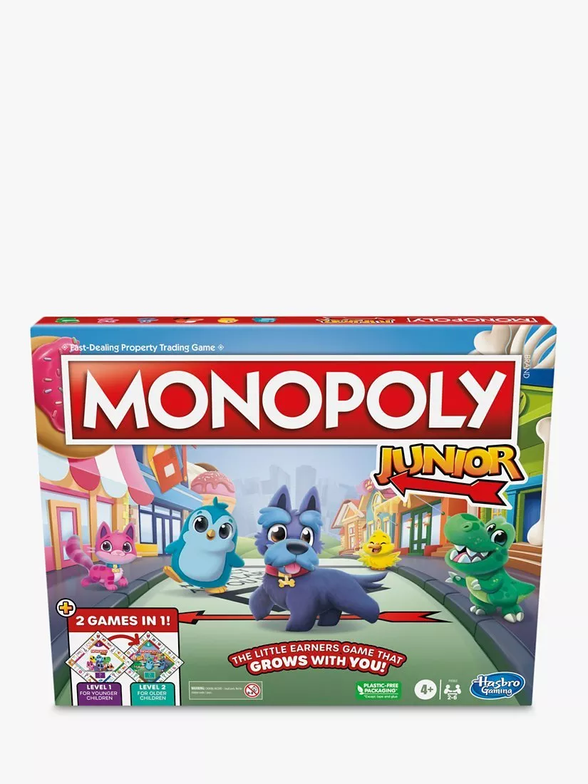 This double-sided version of Monopoly offers 2 levels of play, so families can decide which level is best for them. The Level 1 game is recommended for ages 4-5 and helps kids practice matching and counting, as they count spaces, match pictures, and buy properties. The player with the most properties wins.