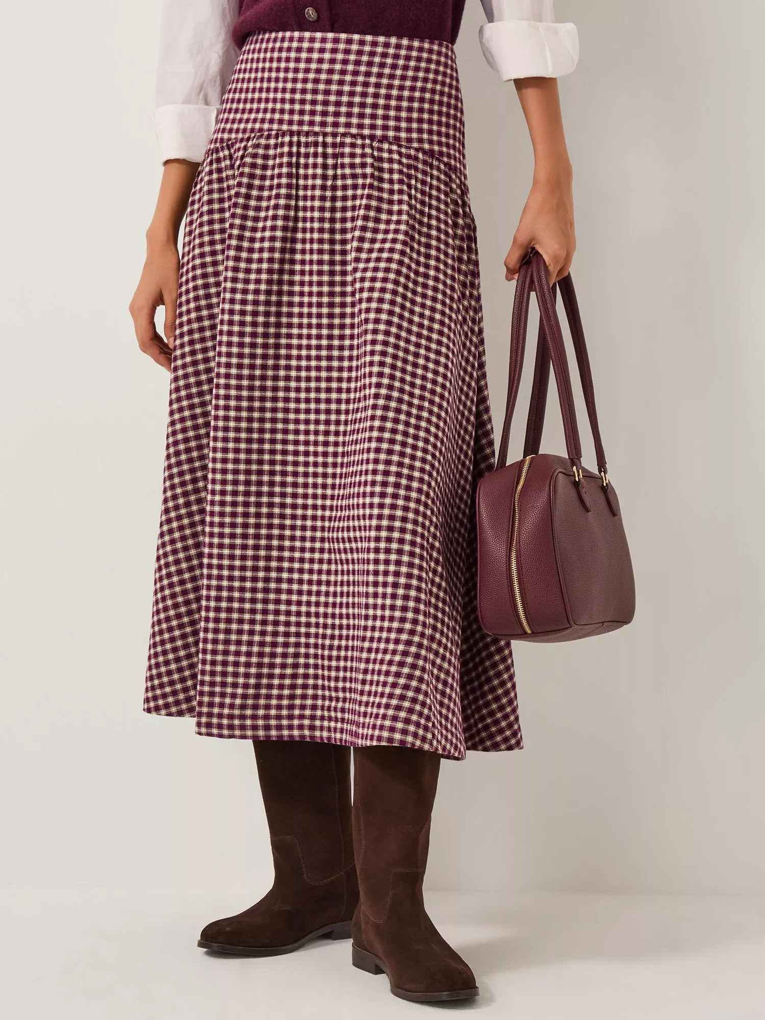 A midi hem defines this easy-wear piece by Monsoon. Shaped to an A-line, it'd designed with a check print and fastens with a zip.