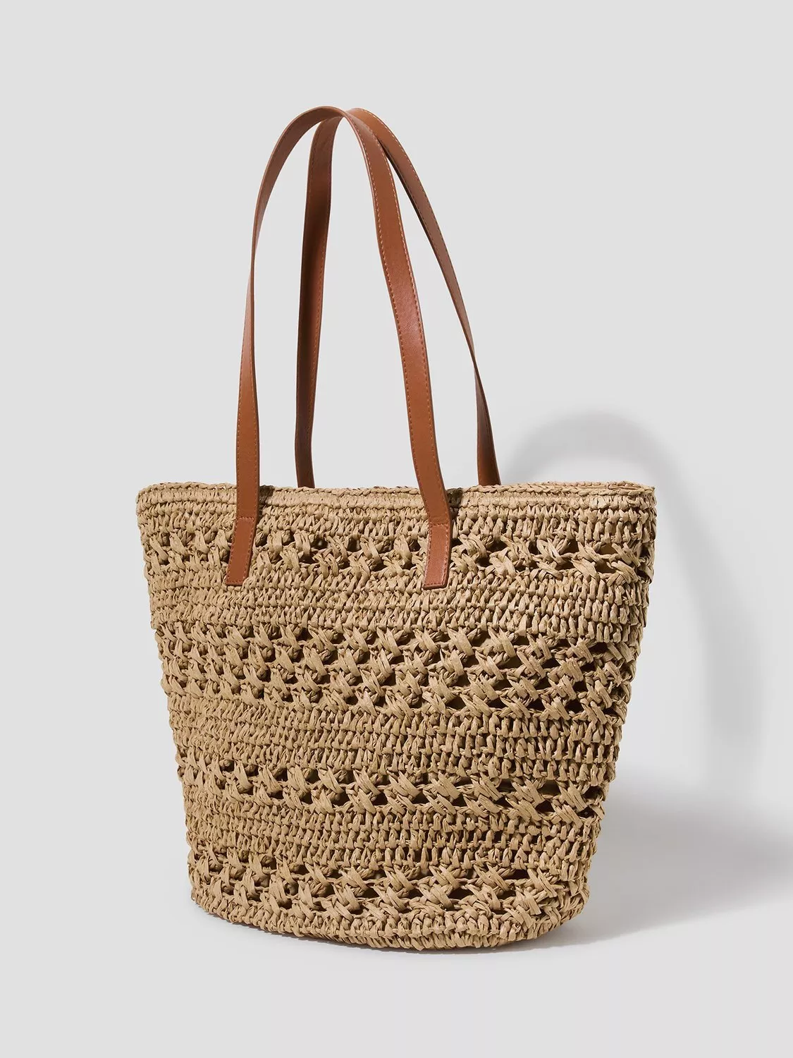 Tote-ally chic. The perfect accessory to pack up your beach essentials on your next sunshine holiday, this tote bag is crafted of raffia with a crochet finish. Complete with two sturdy shoulder straps, an inner clip pocket and secure zip fastening.
