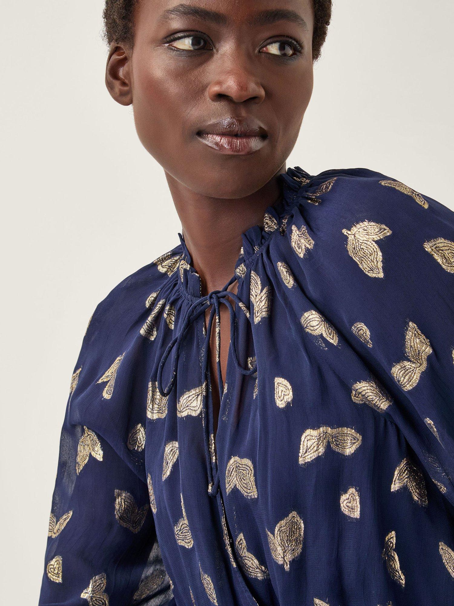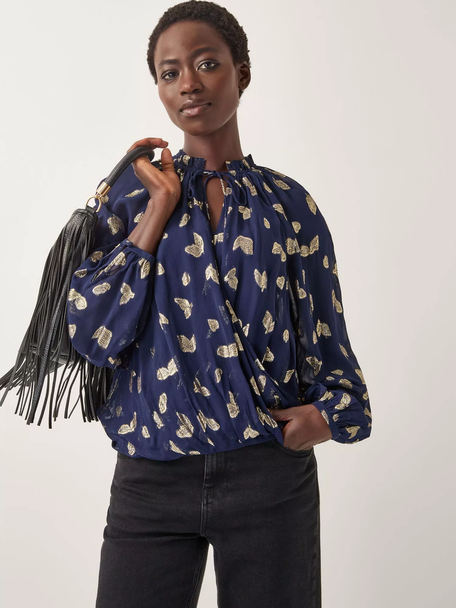 Wrapping around you, this blouse from Monsoon is sure to become part of your weekly rotation. Designed with intricate golden leaves and a ruffled collar, it's one you can go from desk to drinks in. Featuring a tie at the neckline to finish.