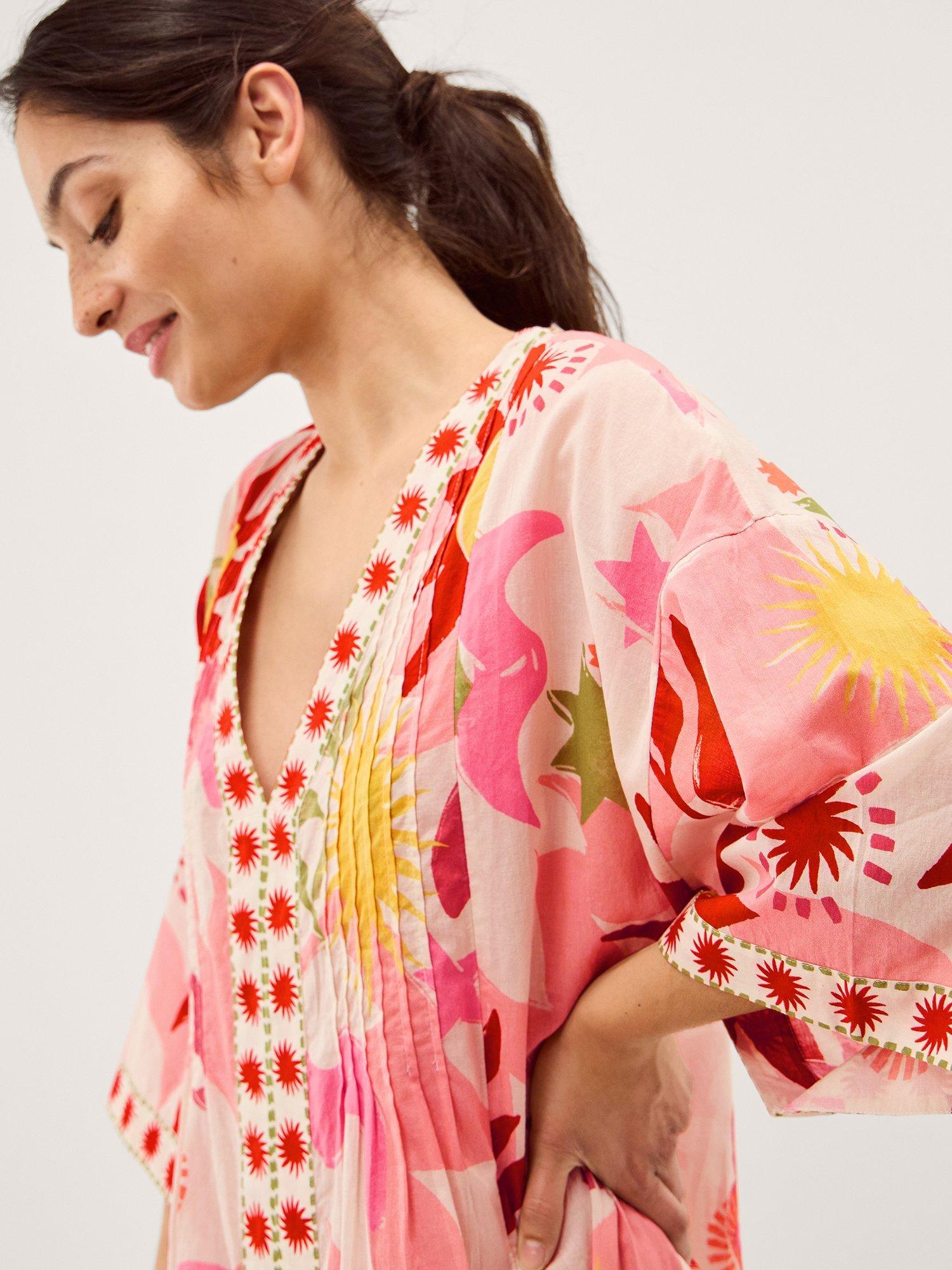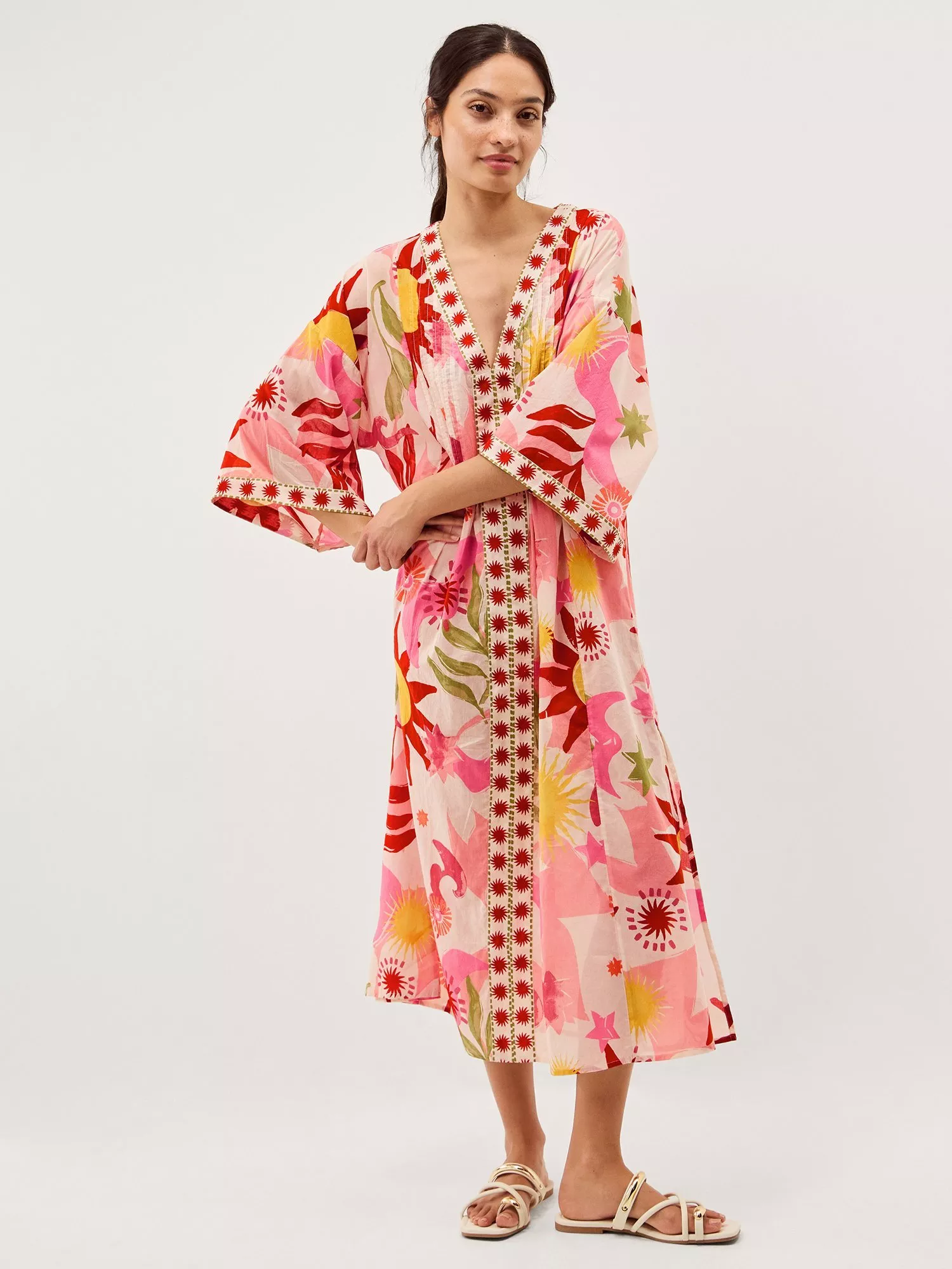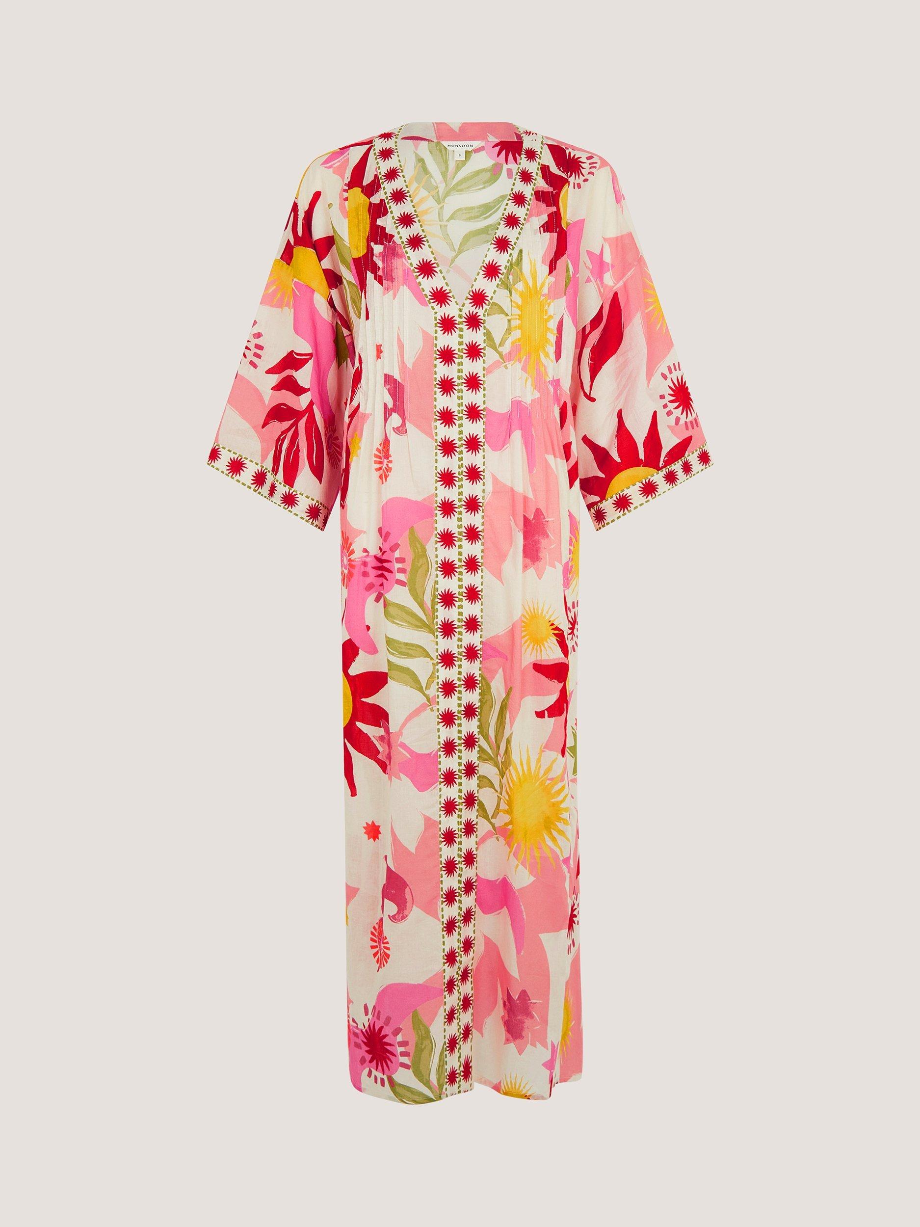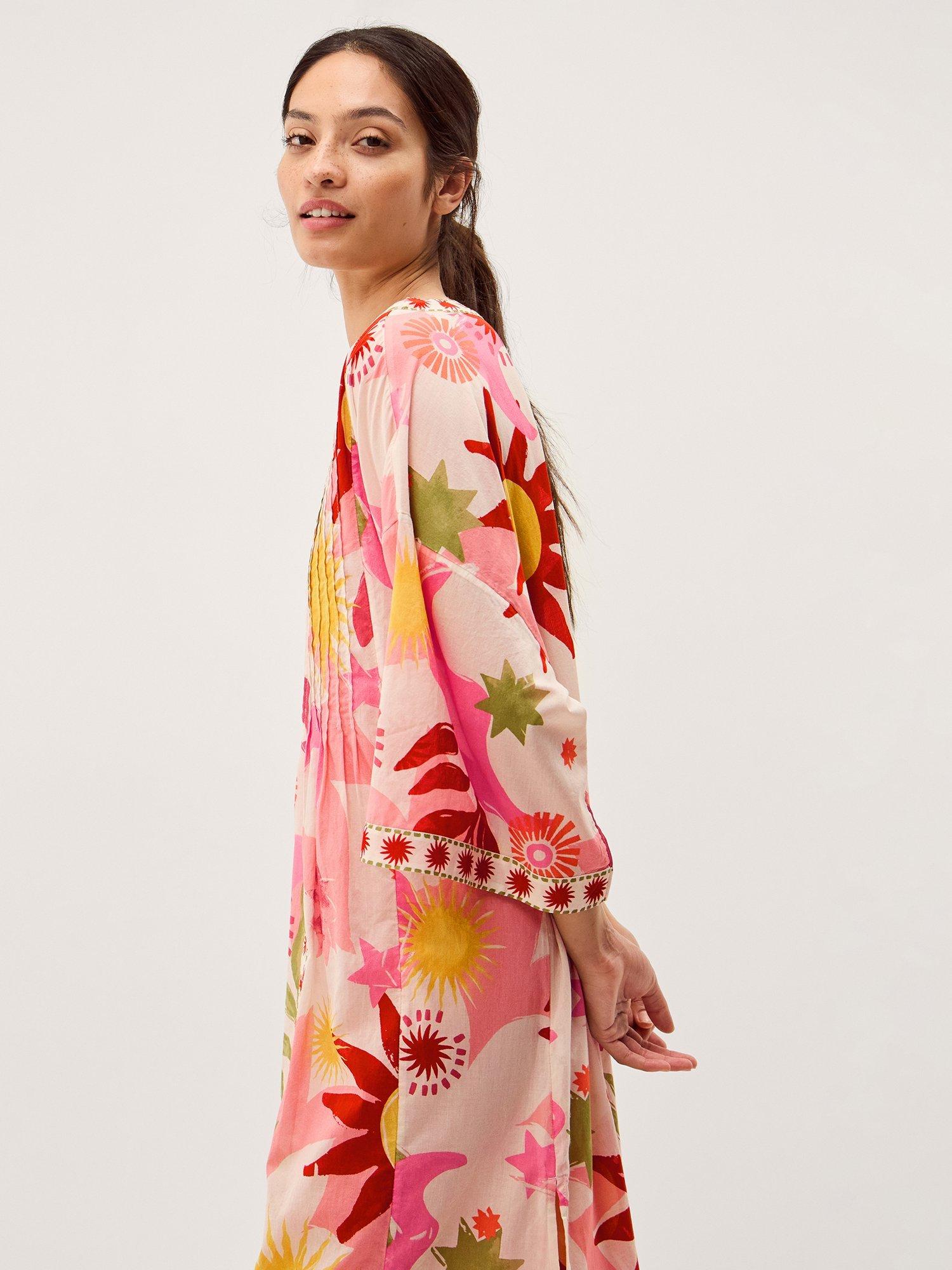 Step into comfort and style with this midi kaftan. The abstract pattern adds interest, while the three quarter sleeves offer ease for your everyday moments. Made from soft cotton, it is designed for you to enjoy and express yourself.