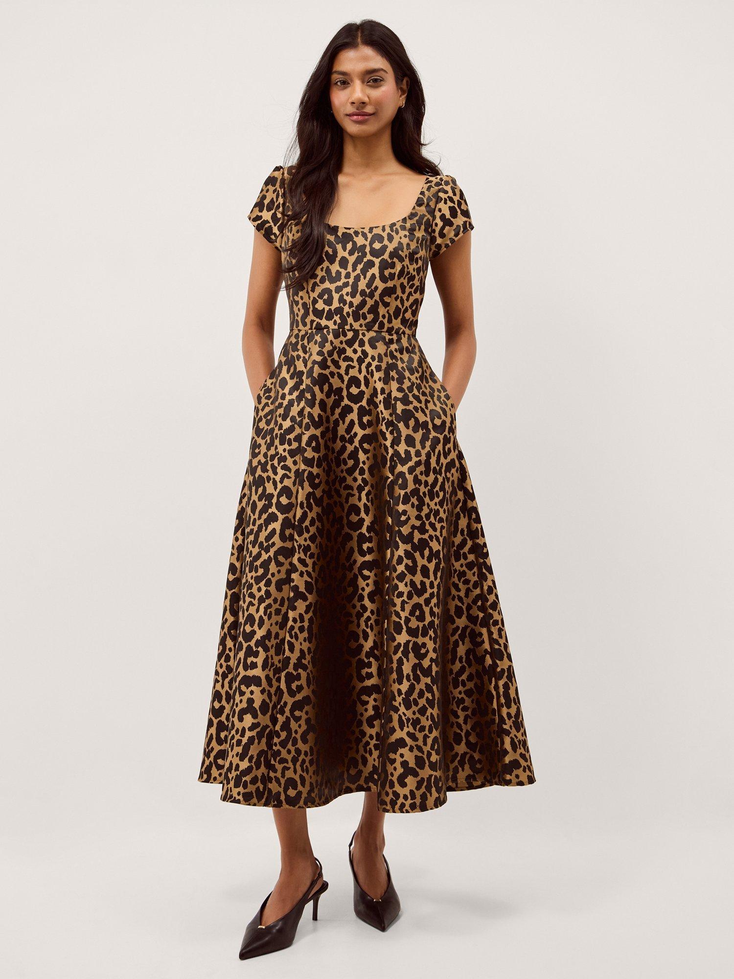 Those three little words: It has pockets. Dipped in a leopard print, this dress is a wildly cute addition to your wardrobe. Designed with short sleeves and a flowy skirt that flares from the waist, it'll take you from desk to drinks. Just add heels and golden accessories.