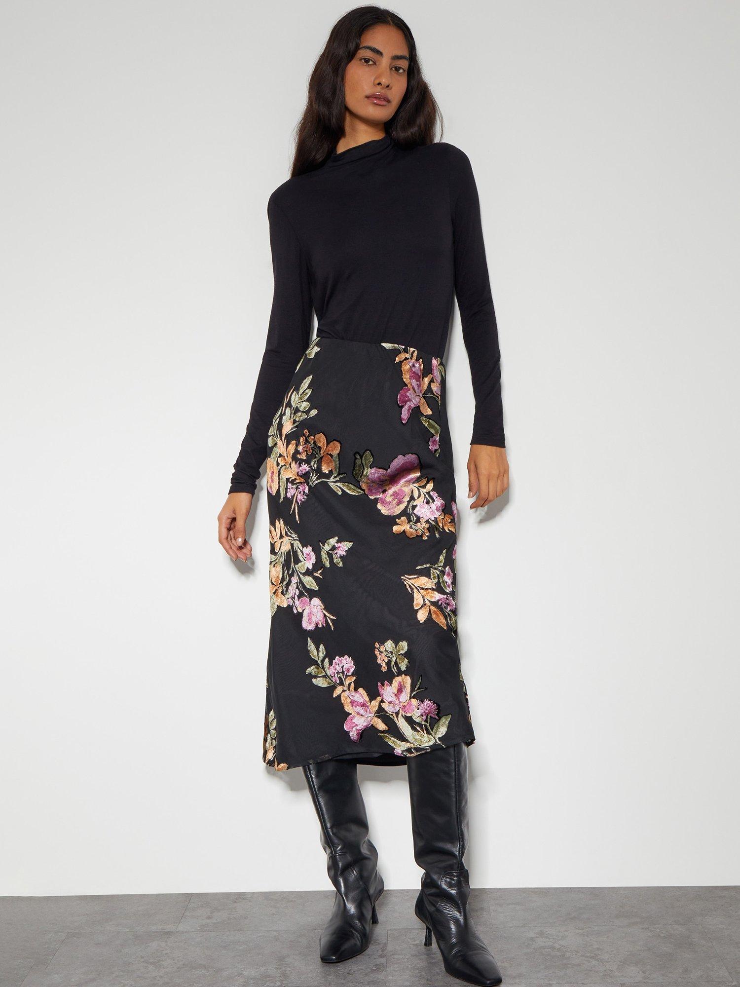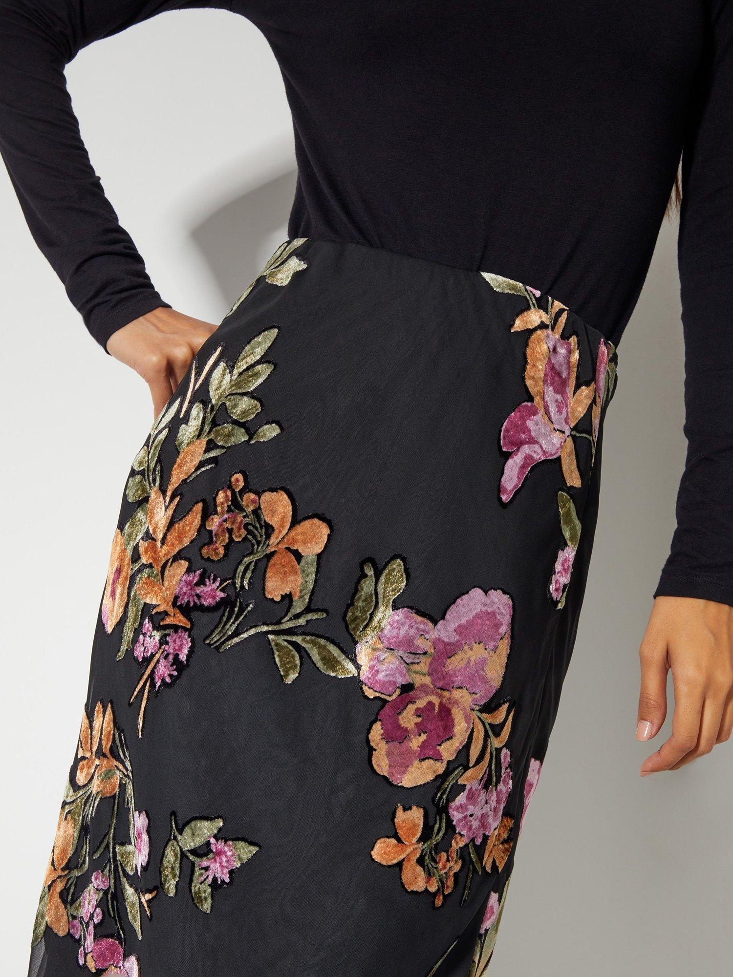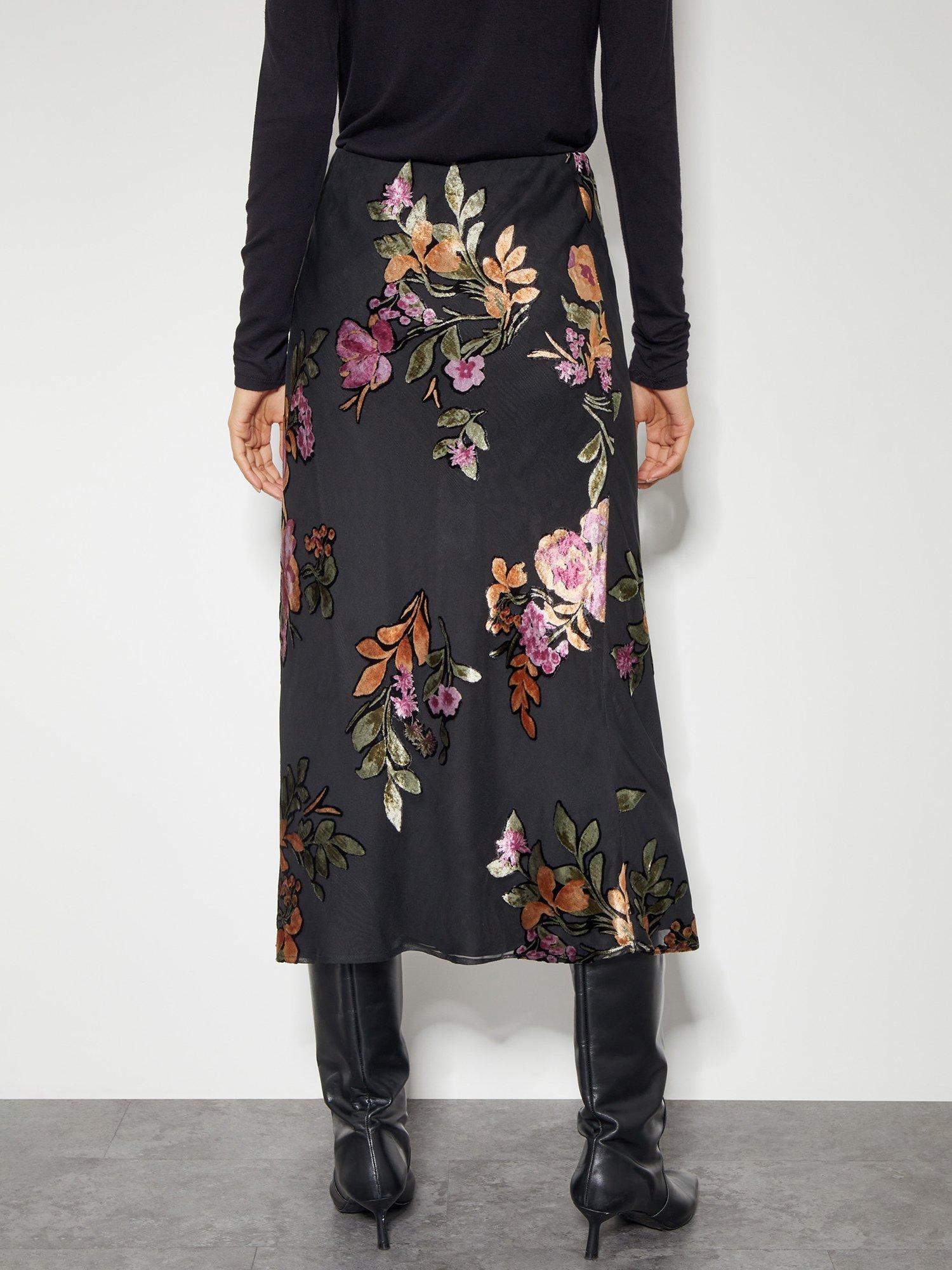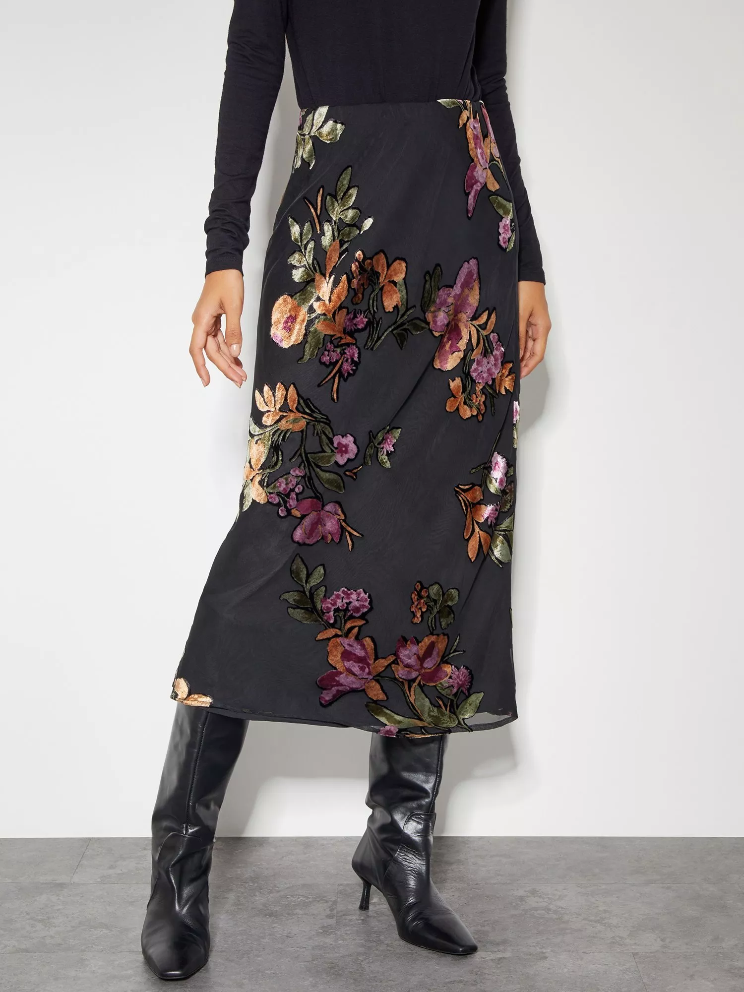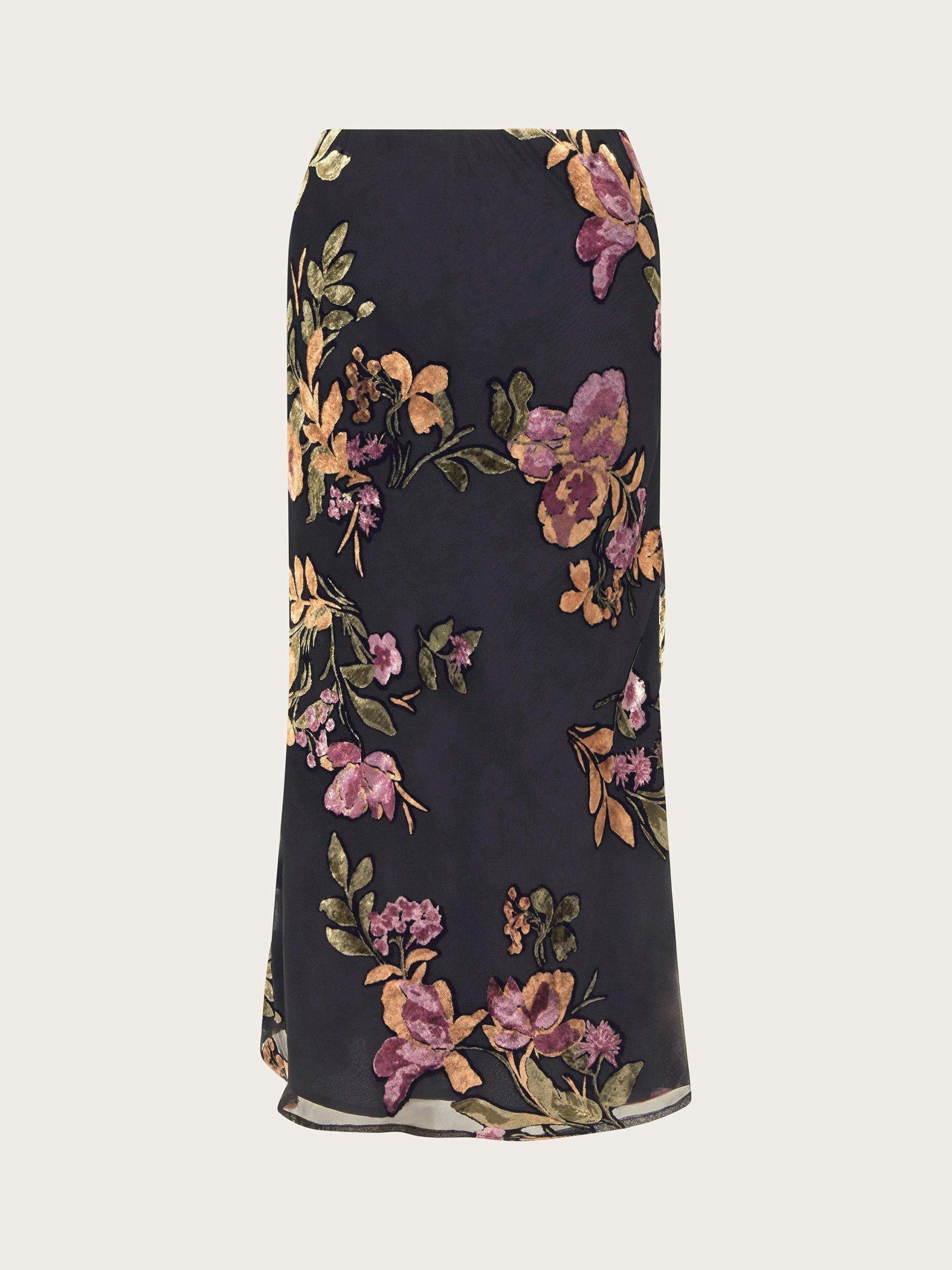 Cut to a classic A-line silhouette, this midi skirt by Monsoon is adorned with a devore flower print.
