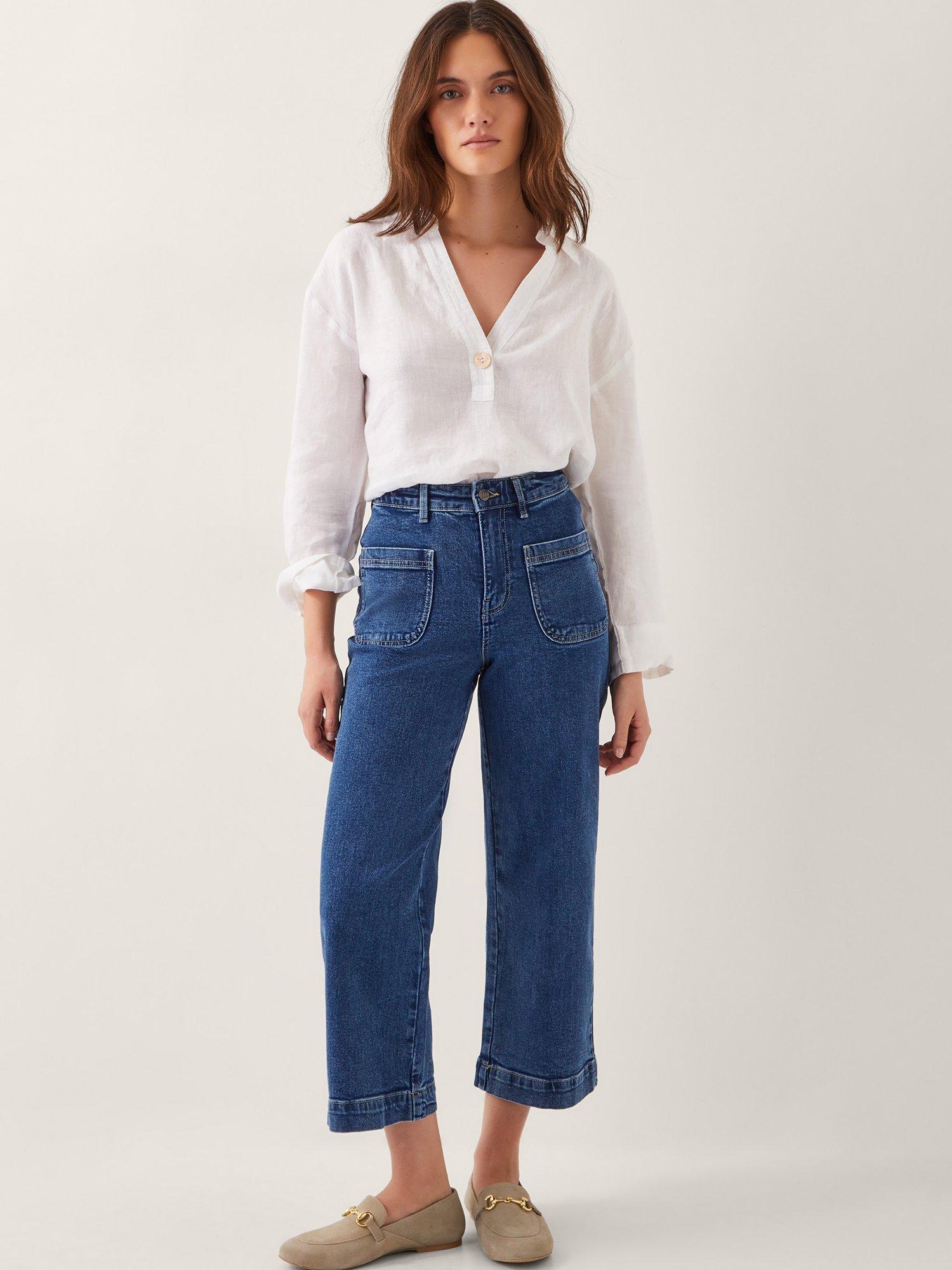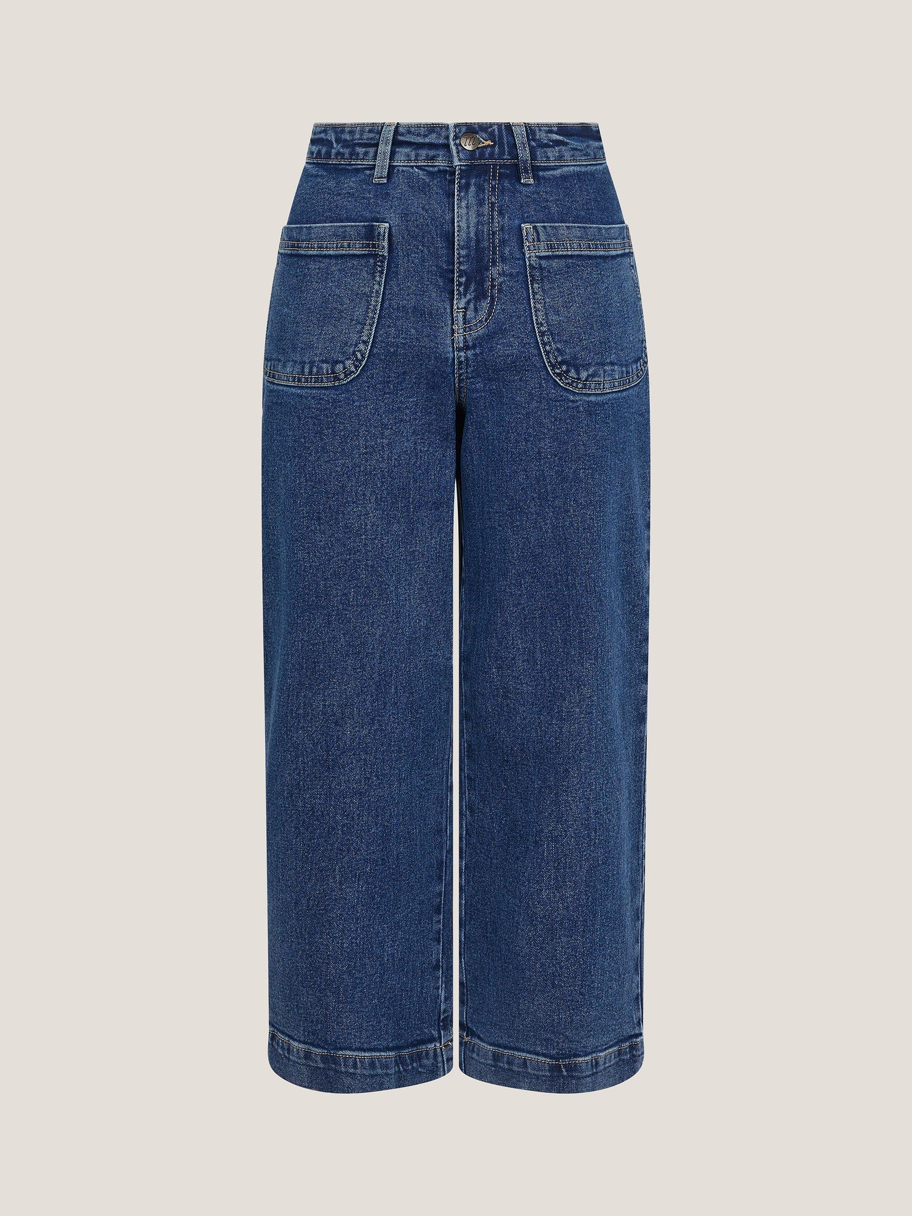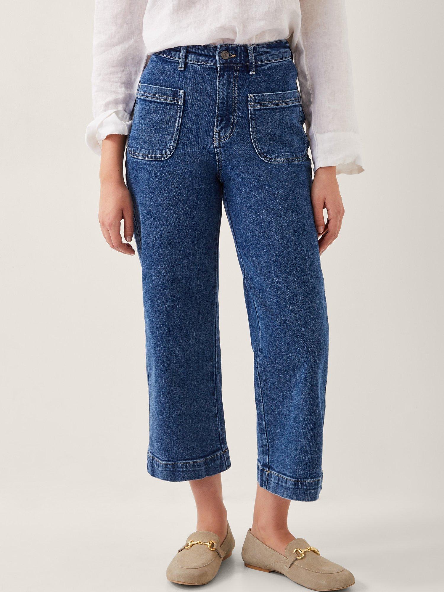Classic denim you can wear all year round, these jeans are slung high on the waist with wide leg cuffs and a cropped finish. Complete with a front zipper and five-pocket styling.