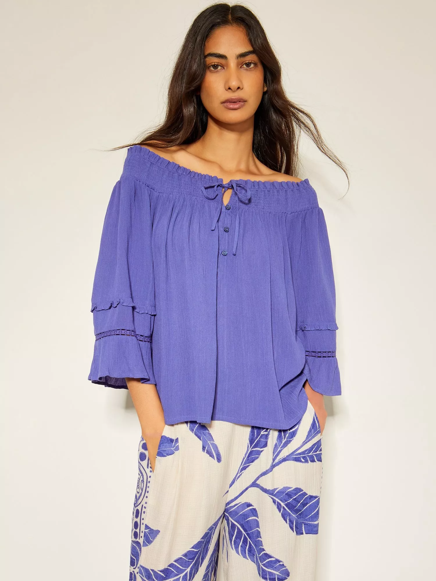 An effortless choice, this smock top from Monsoon makes for the perfect companion to patterned layers. Flattering with a dramatic vintage neckline and three-quarter length sleeves, it is made from soft fabric that withstands creasing and pairs effortlessly with floaty summery skirts for warm days spent with good friends.