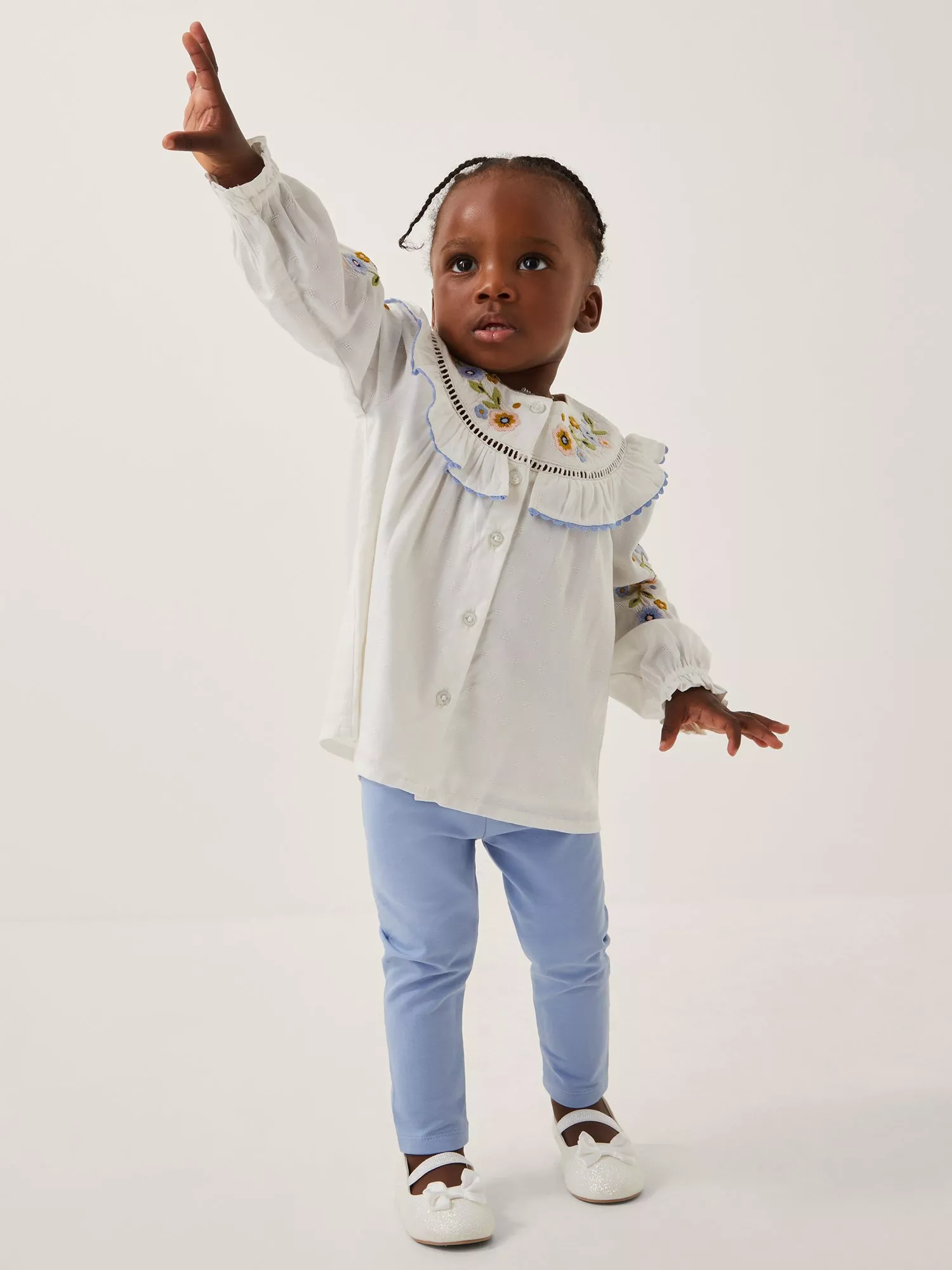 The perfect combo. This set includes a floral embroidered cotton blouse and blue leggings to match. A cute little outfit for baby to wear any day of the week.