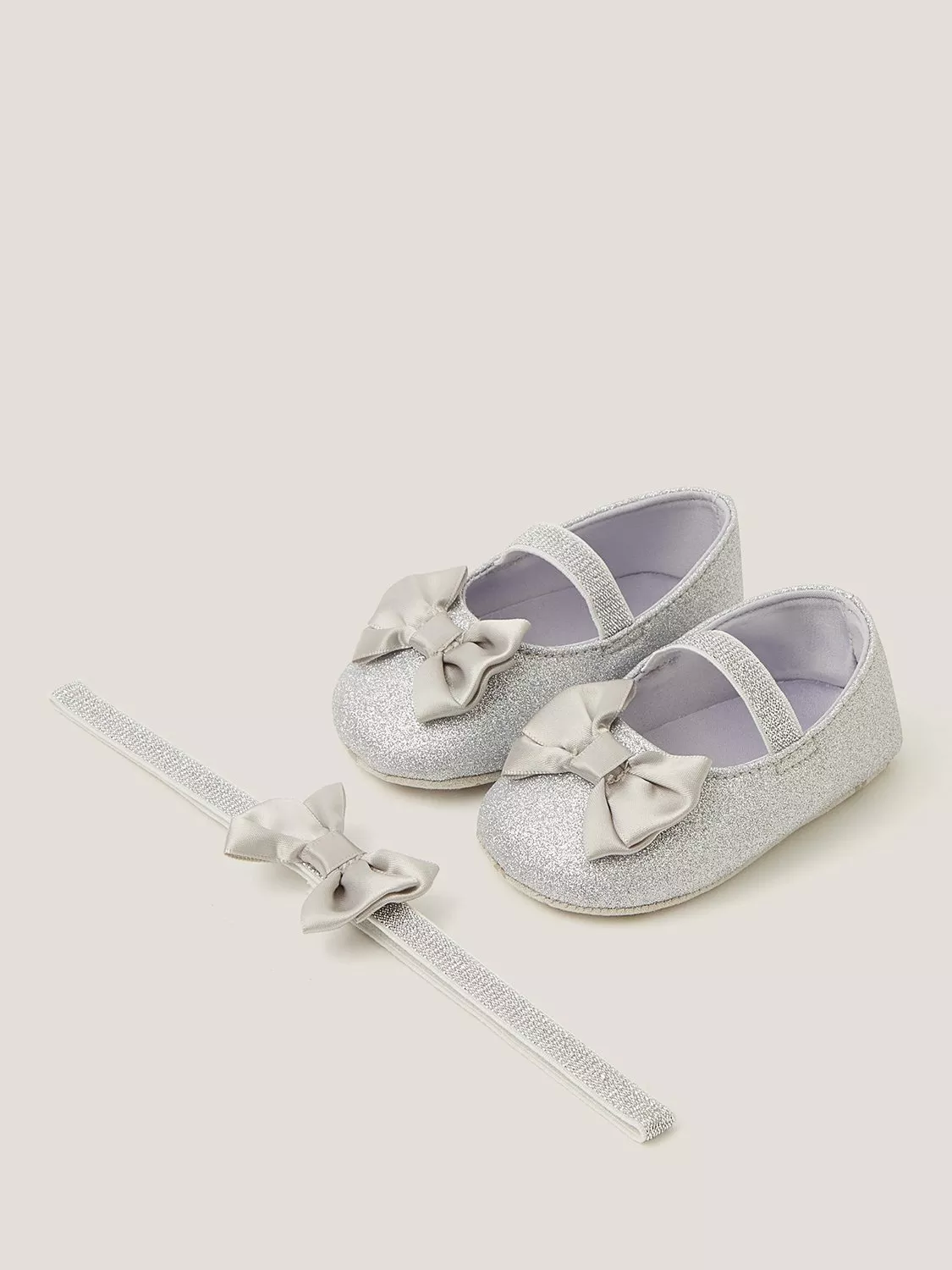 Perfect for baby's first special occasion or party, this set from Monsoon includes a stretchy headband and booties, both sprinkled with glitter and topped with satin bows.