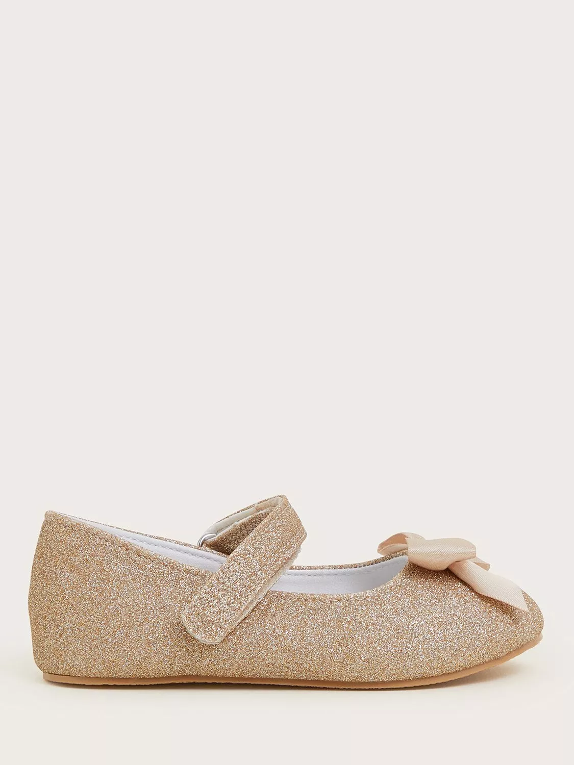 Sparkle with every step. Perfect for baby's first special occasion or party, these walkers are designed with a rip-tape strap, sprinkled with gold glitter and topped with a satin bow.