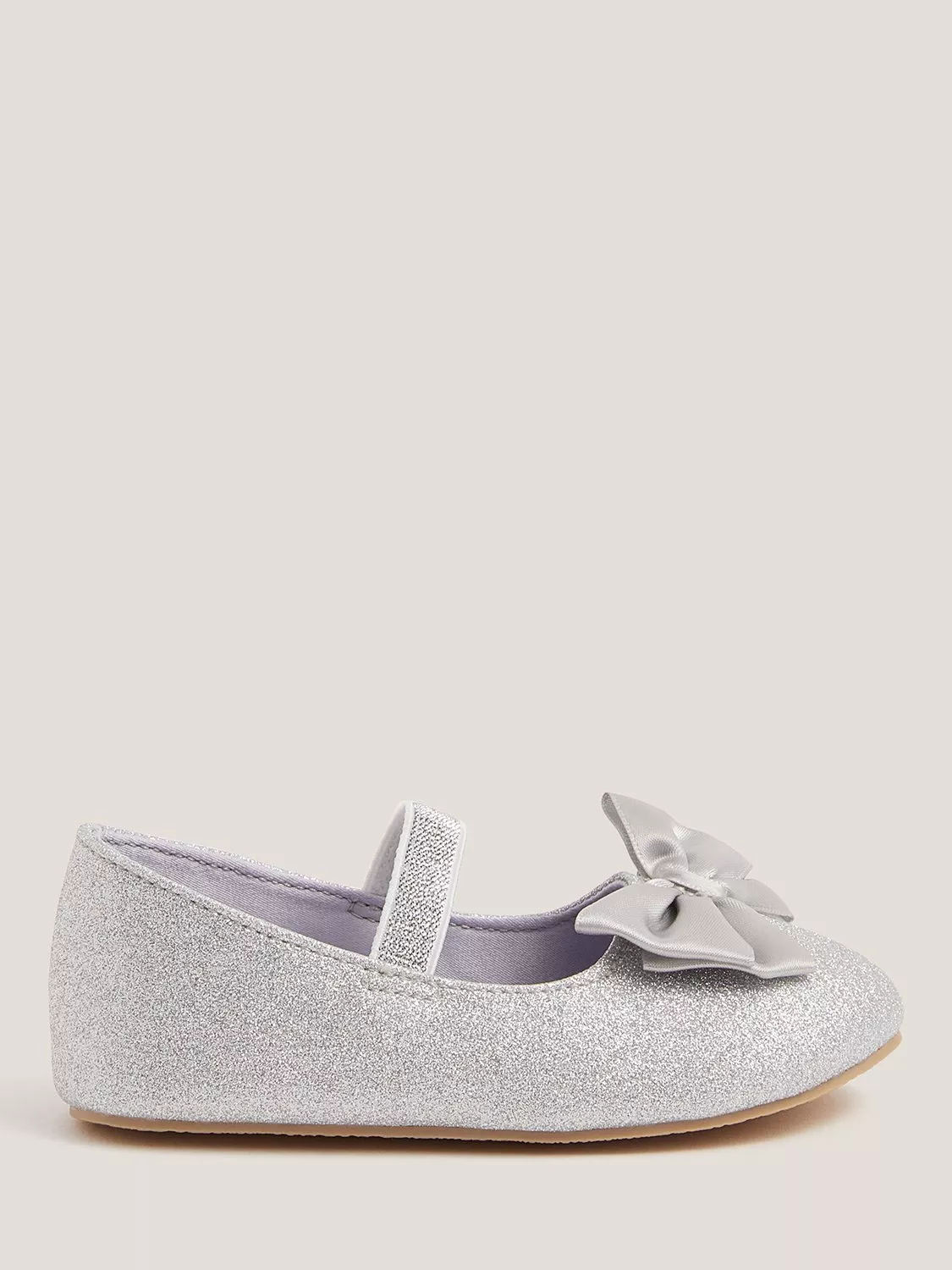 Sparkle with every step. Perfect for baby's first special occasion or party, these walkers are designed with a rip-tape strap, sprinkled with gold glitter and topped with a satin bow.