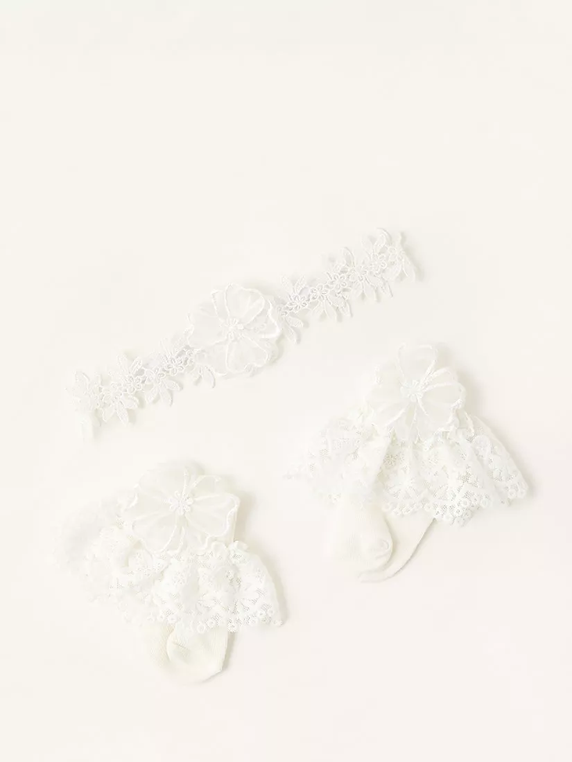 MonsoonBaby Lace Top Socks & Headband Set, Ivory
