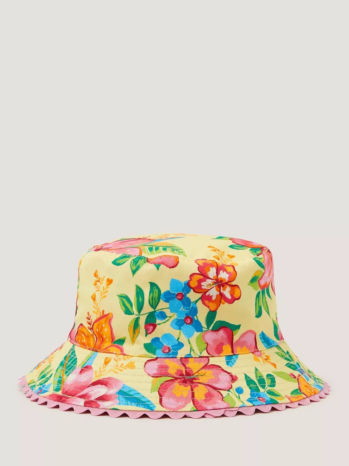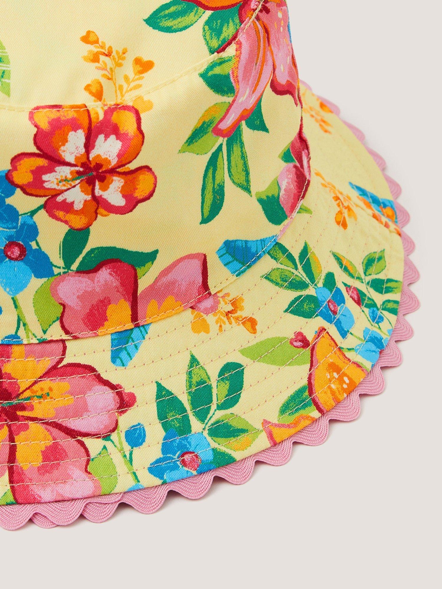 Printed with tropical flowers on a vibrant backdrop, this bucket hat is perfect for their first sunny getaway.
