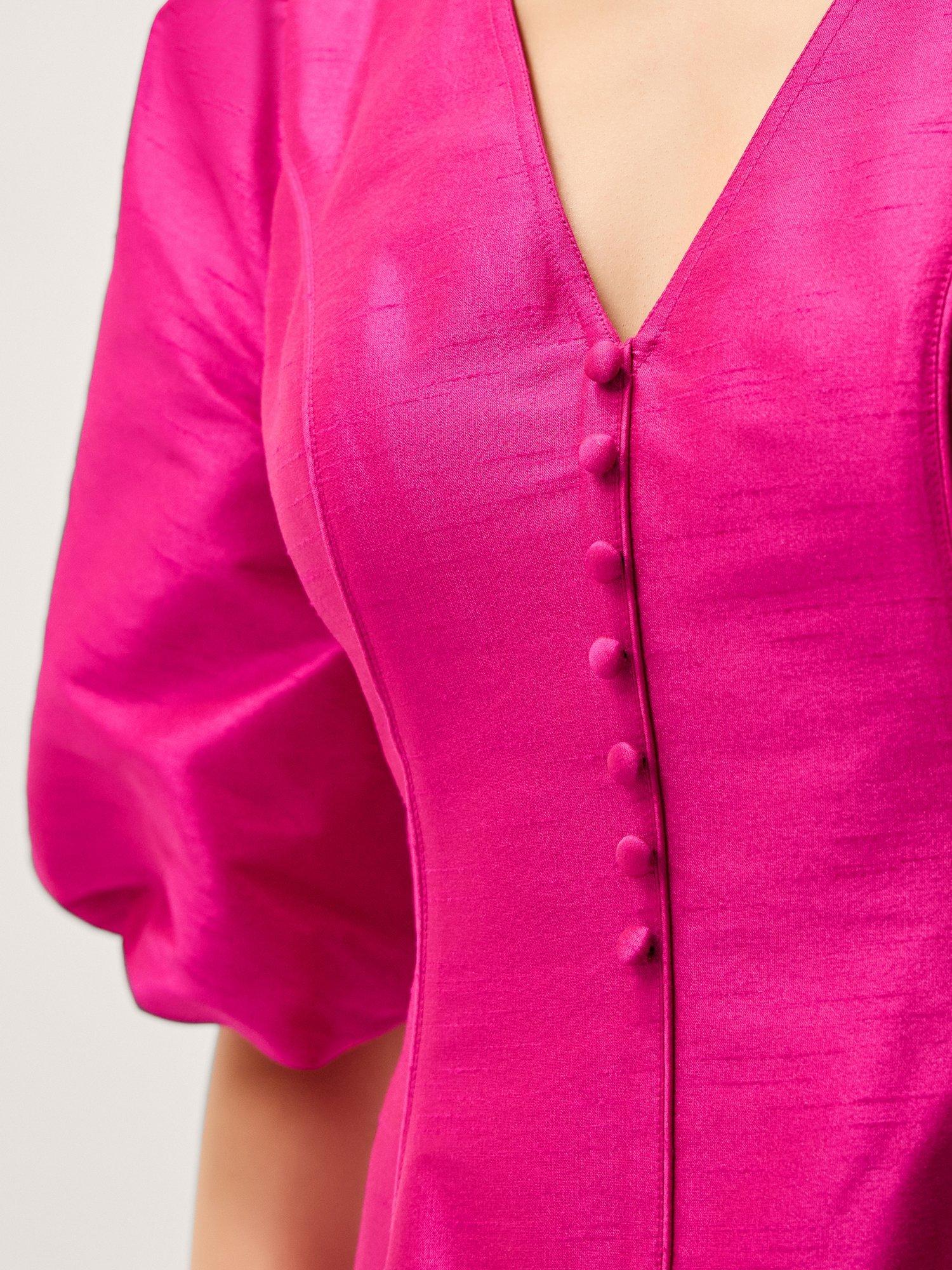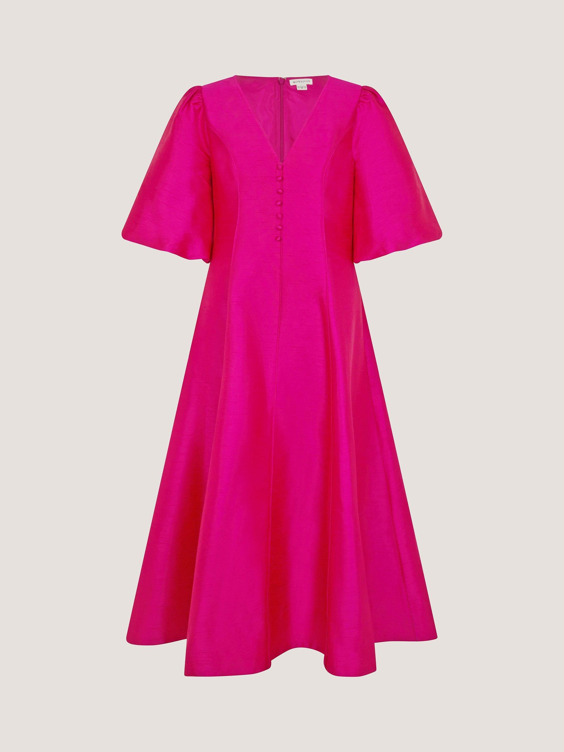 Fitted, flared, and fab. This elbow sleeve midi dress from Monsoon has a V-neckline whilst the plain colour means it goes with all your accessories.