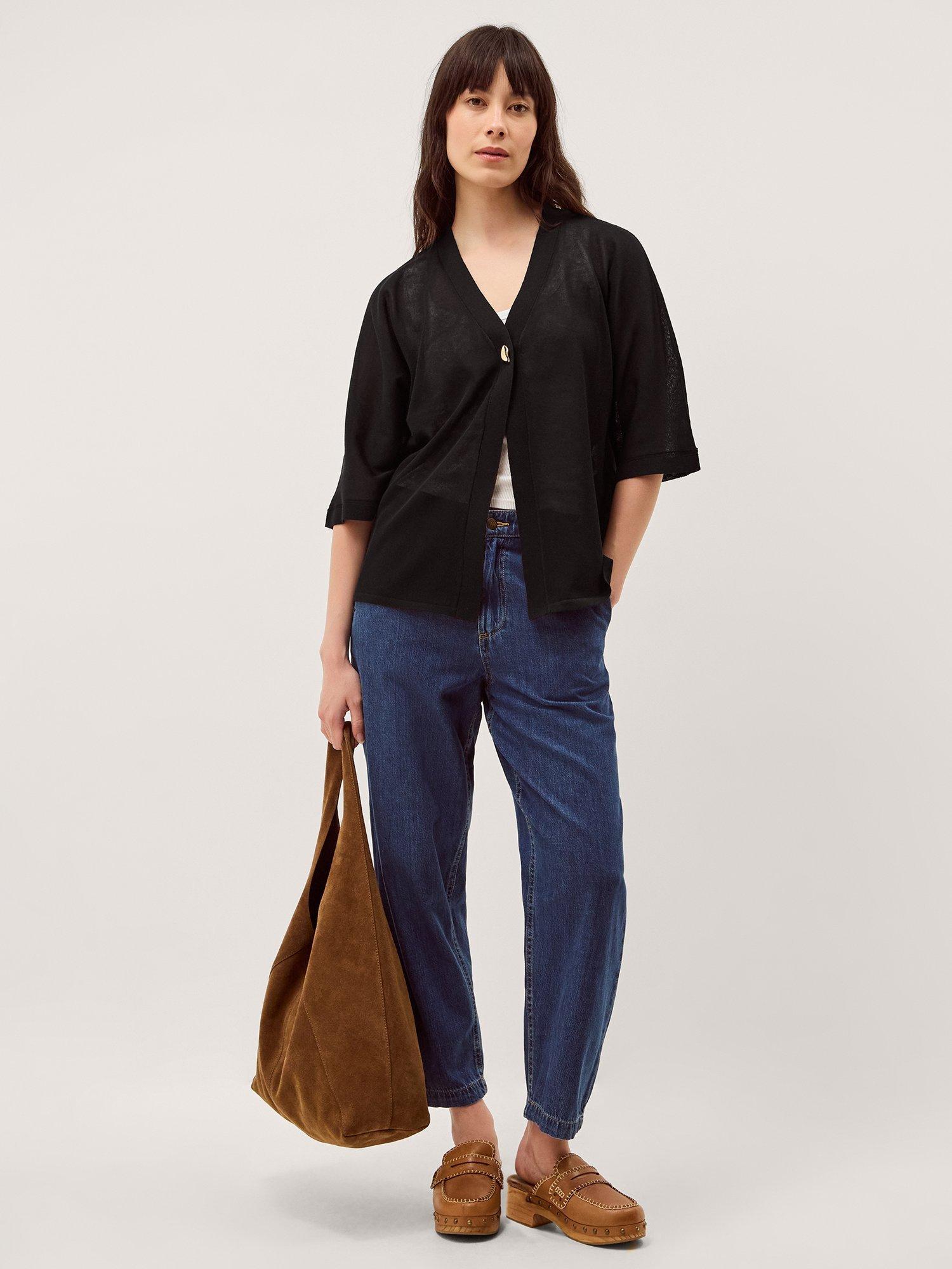 Spun with lightweight yarns, this cardi features sleeves that fall to the elbows and a single button fastening in a glistening golden tone. A layer you can wear in spring through to summer, it's made for sun-soaked days with a gentle breeze.