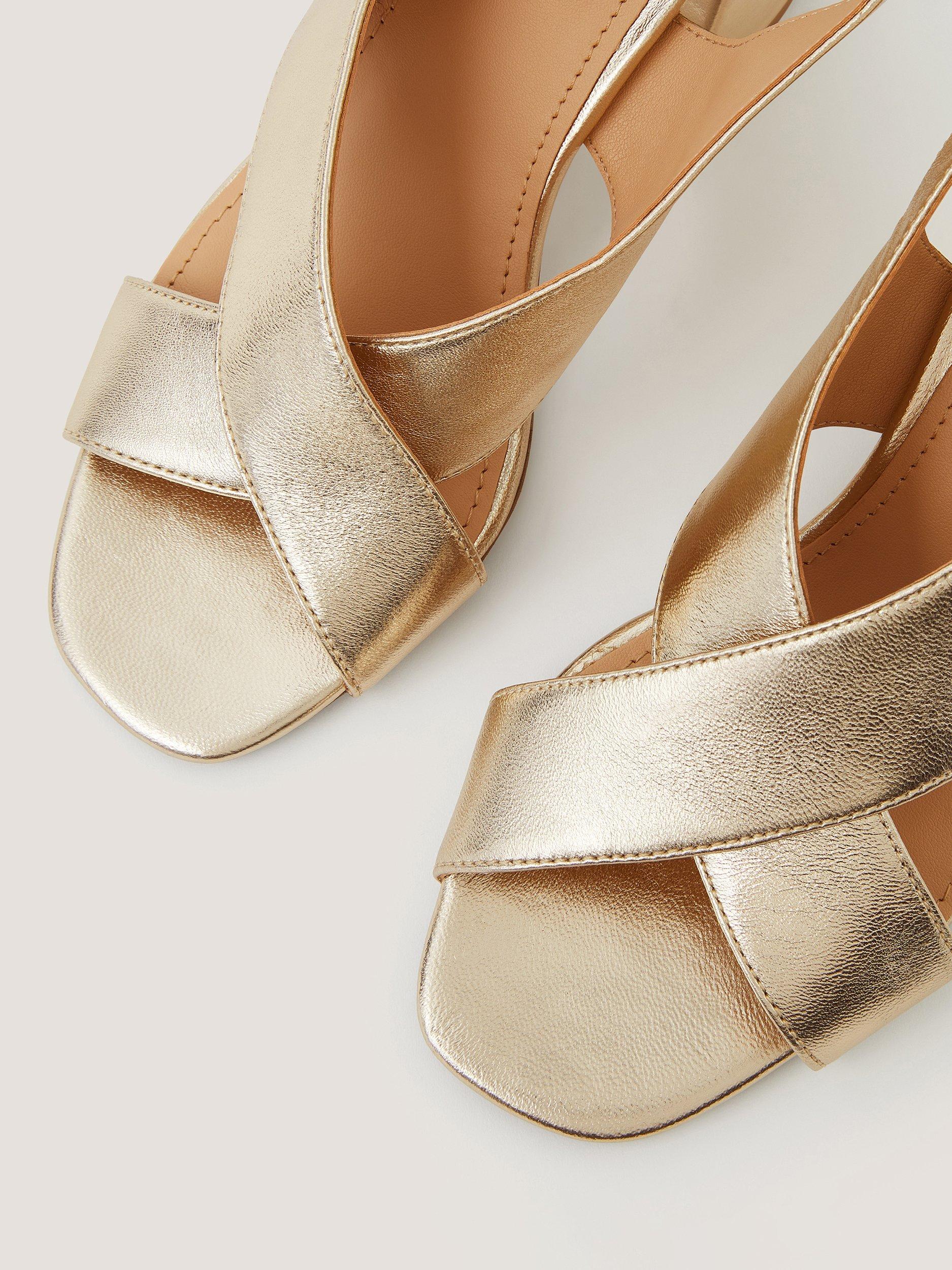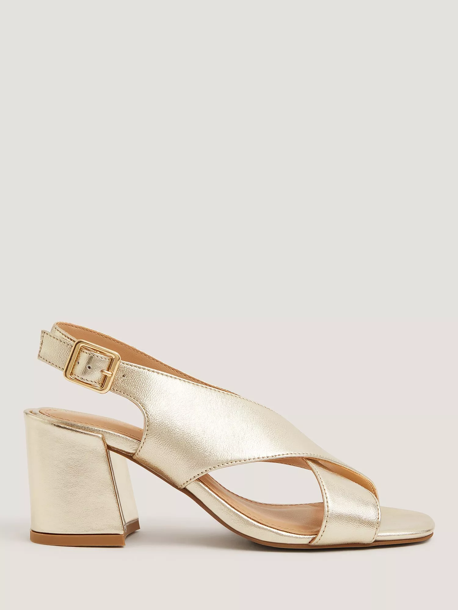 Step it up. Designed with a front cross over strap, these heels are a classic addition for any shoedrobe. Made from leather, they feature a chunky block heel, perfect for wearing from day to night.