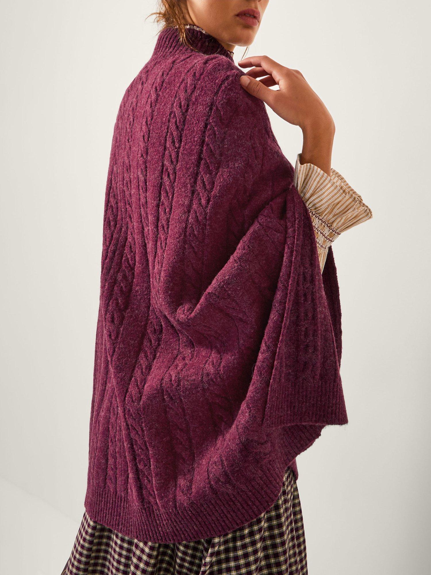 Wrap yourself in comfort with this mid-length poncho. Its sleeveless design offers easy layering, while the crew neck and cable knit fit seamlessly into your routine.