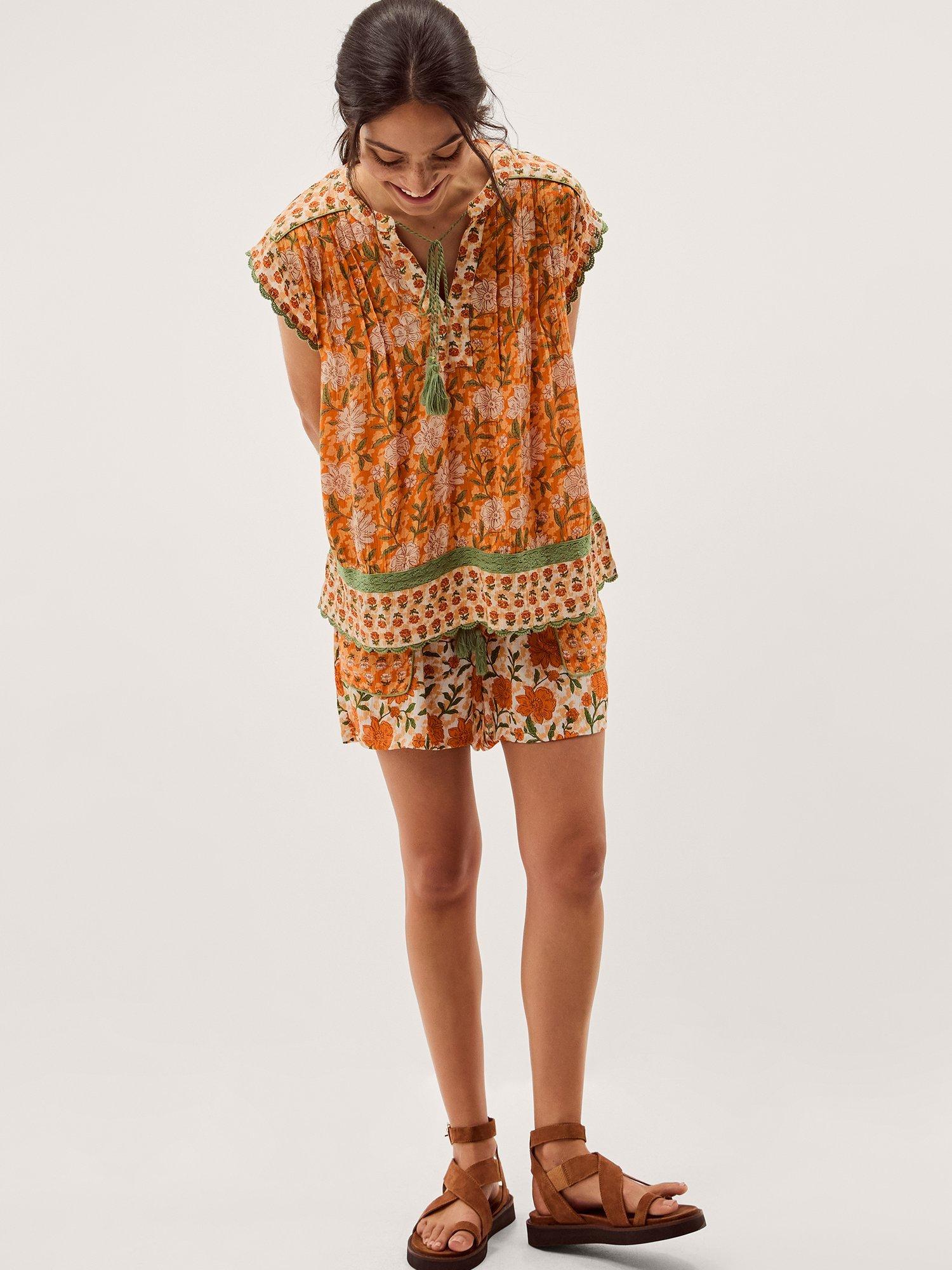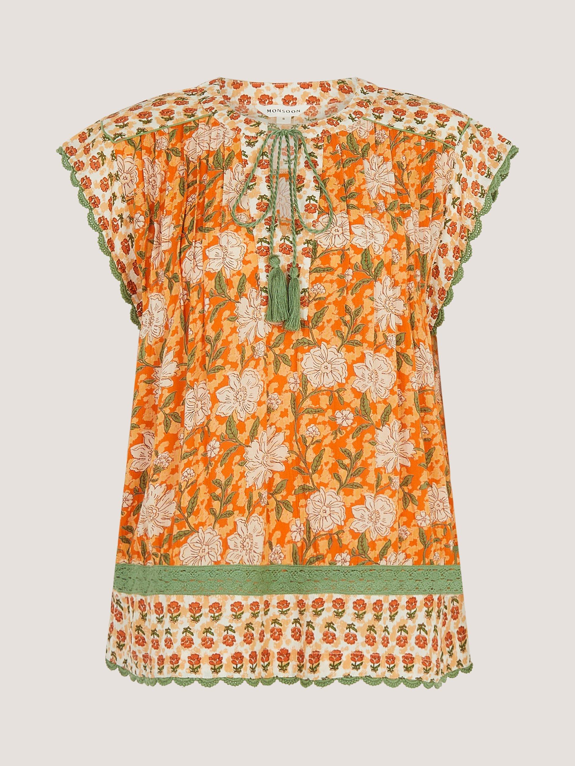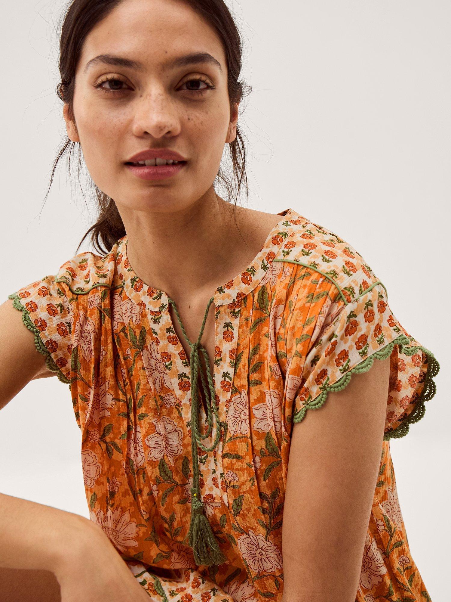 An effortless top from Monsoon, made from light viscose. Featuring a tie neck, it will instantly lift your mood with its bloom-filled floral print. Made for easy days and endless sunshine.