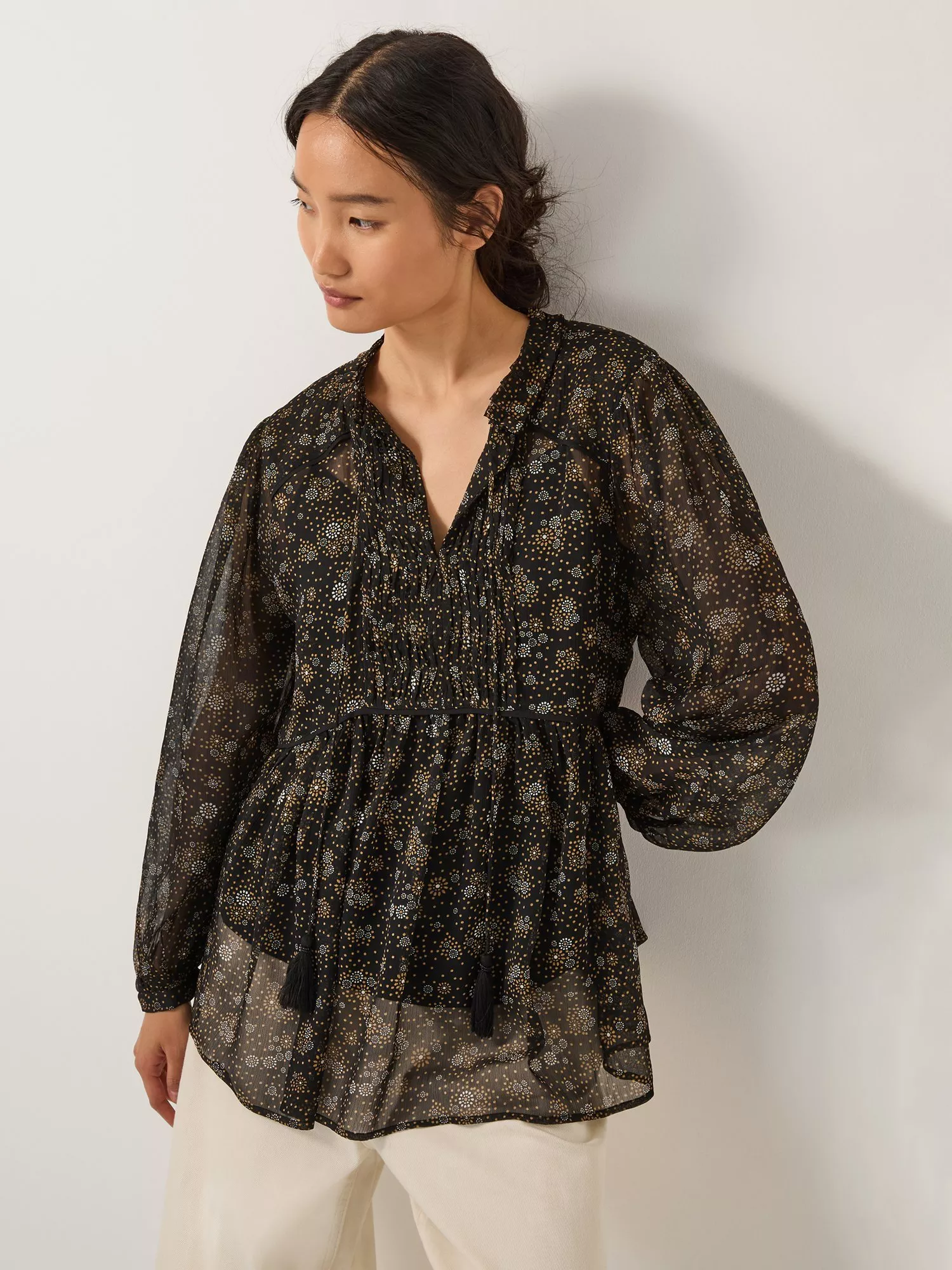 An effortless blouse from Monsoon. With a V-neck and long sleeves, it will instantly lift your mood with its bloom-filled floral print. One you'll reach for again and again.