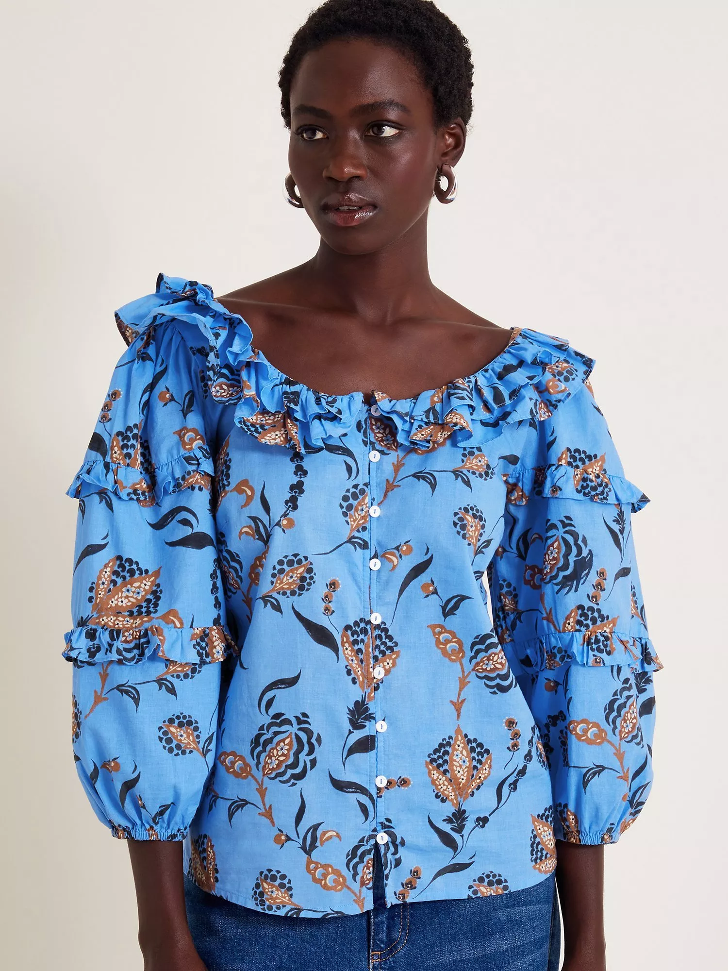 Bringing a neat addition to your wardrobe, this blouse from Monsoon gives a nod to nature with its unique print. Timeless with its boat neckline and balloon sleeves, it's made from cotton for comfortable wear and will slot seamlessly into your everyday staples.