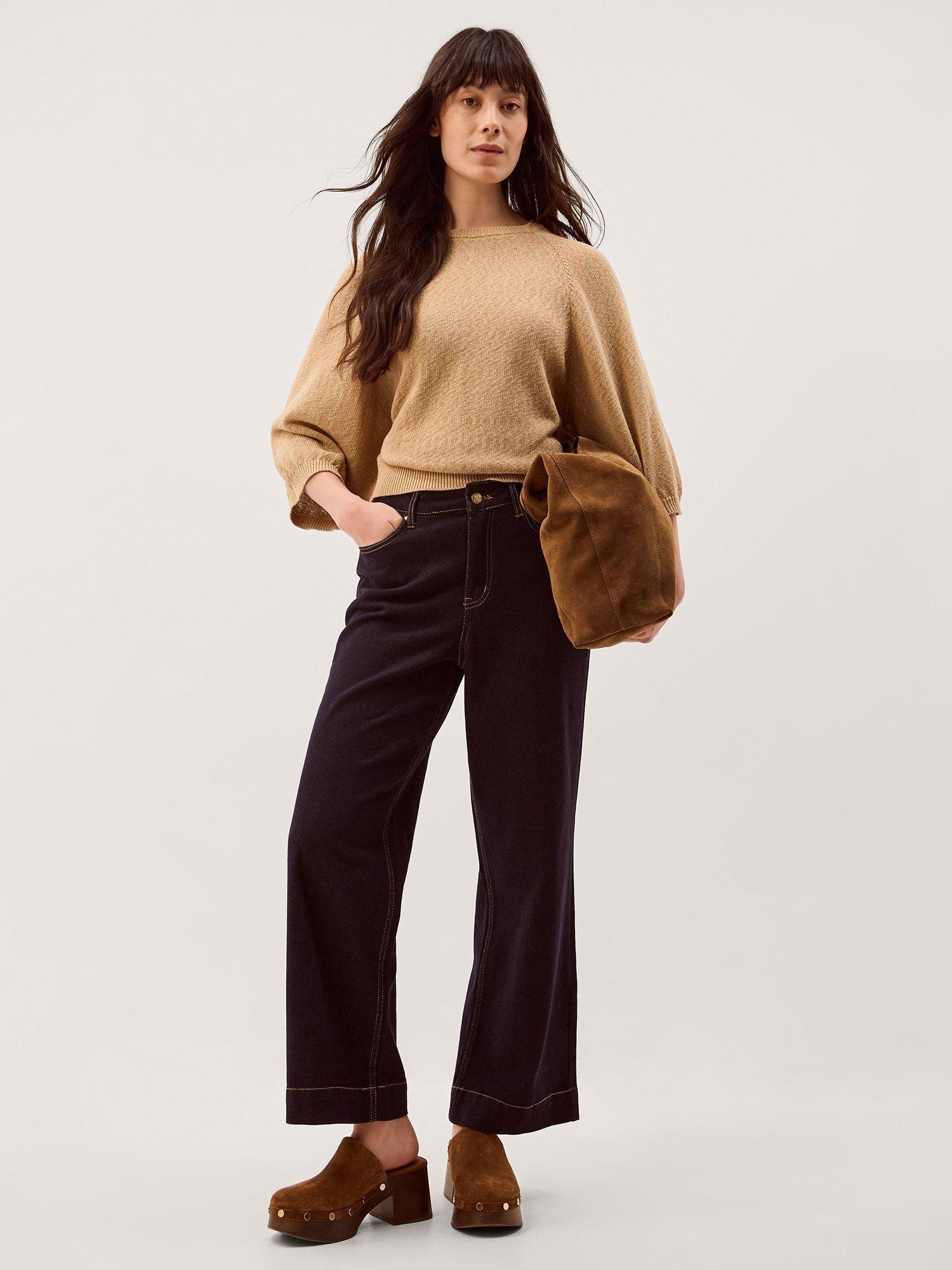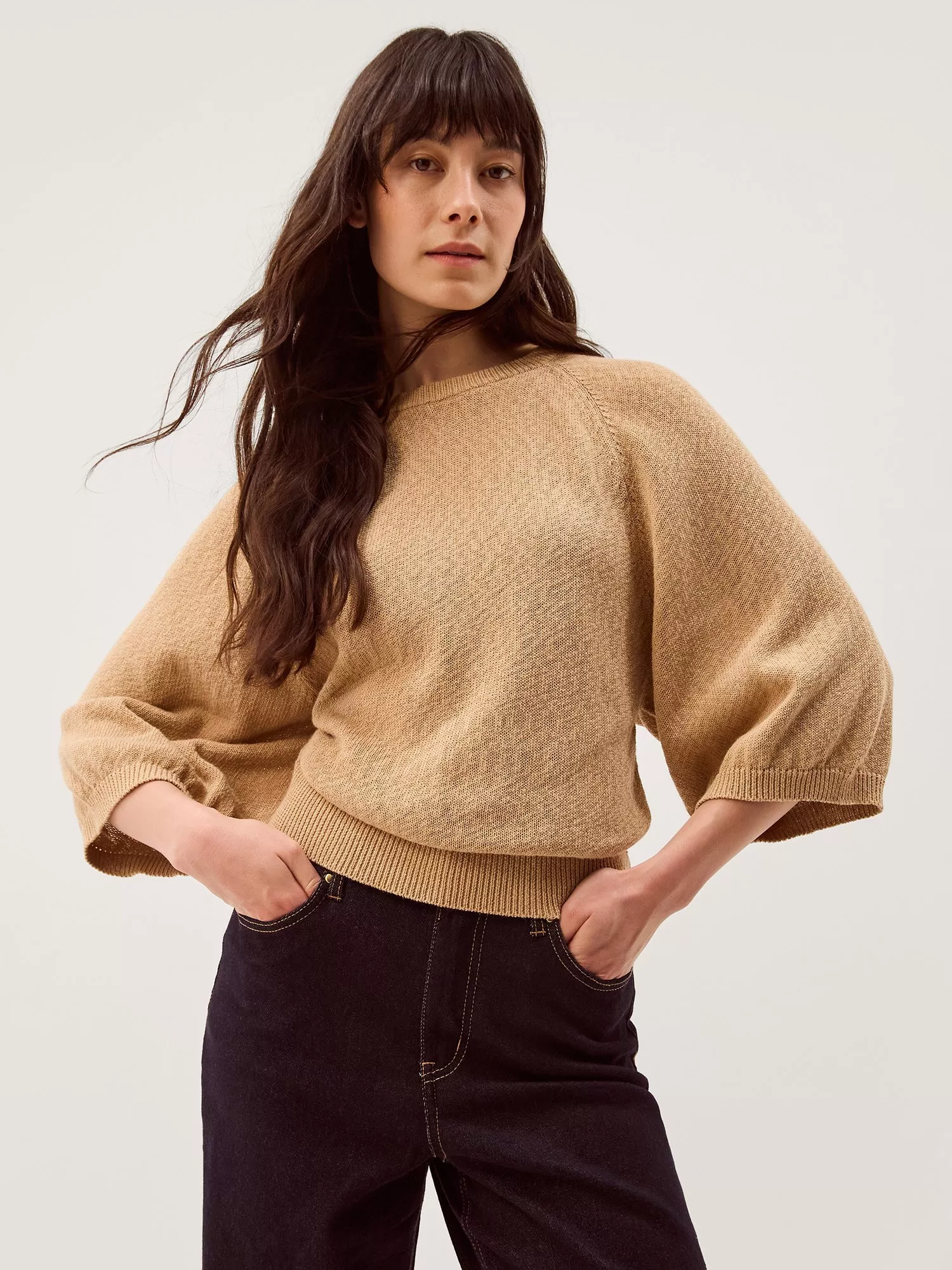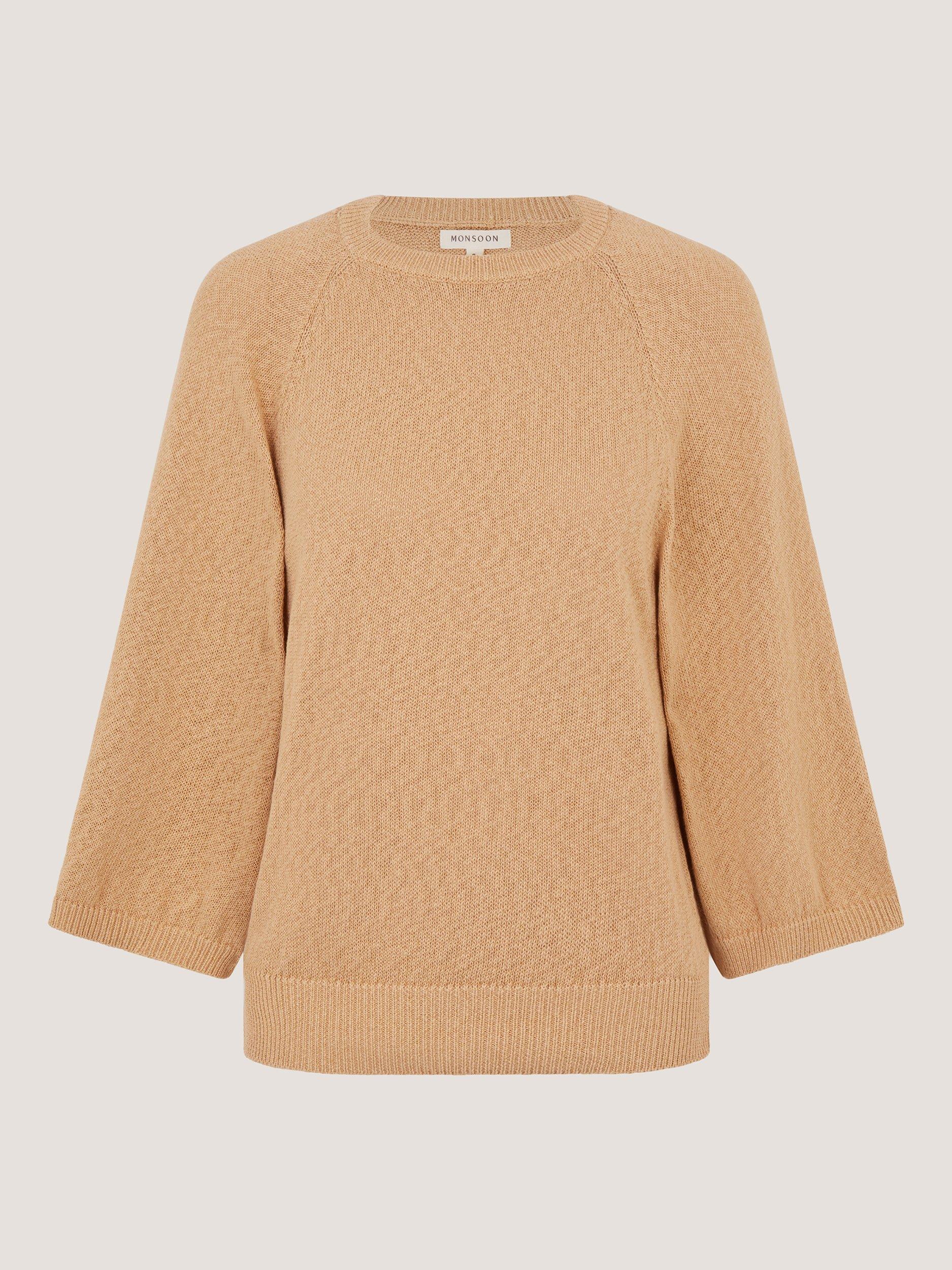Monsoon's cotton blend jumper. The round neck and three-quarter sleeves keep you comfortable, while the regular fit makes it easy to wear for anything your day brings.