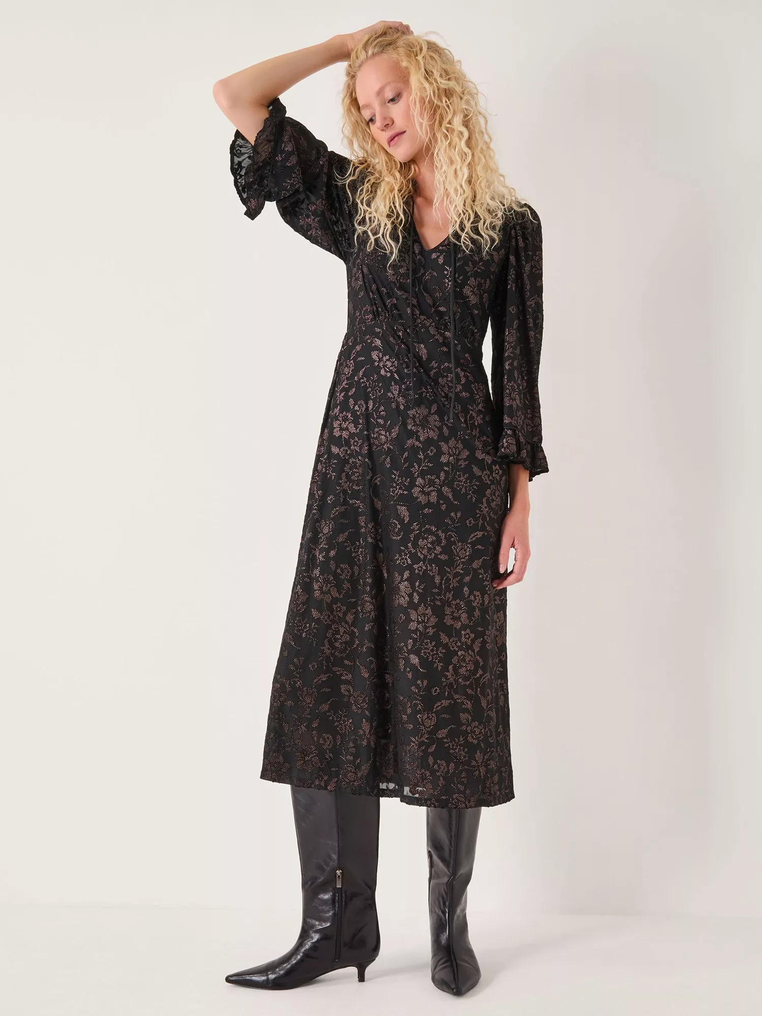 Trends come and go but an A-line silhouette is forever. This three quarter length sleeve midi dress by Monsoon is framed with a tie neck and plenty of floral flair.