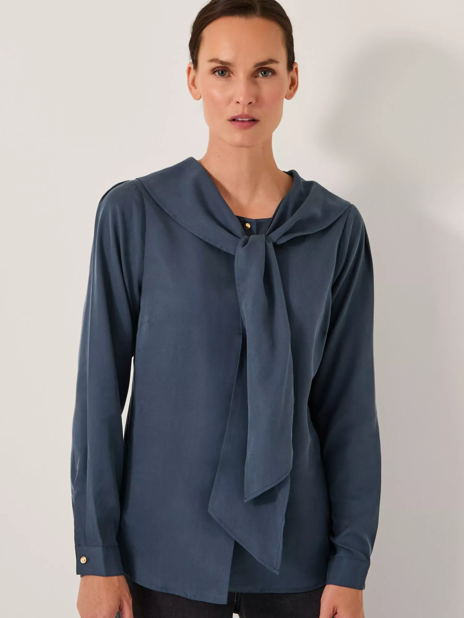 Designed in super-soft fabric, this blouse showcases a tie detail around the neckline for an elevated finish. Fastens at the front with gold-tone buttons.