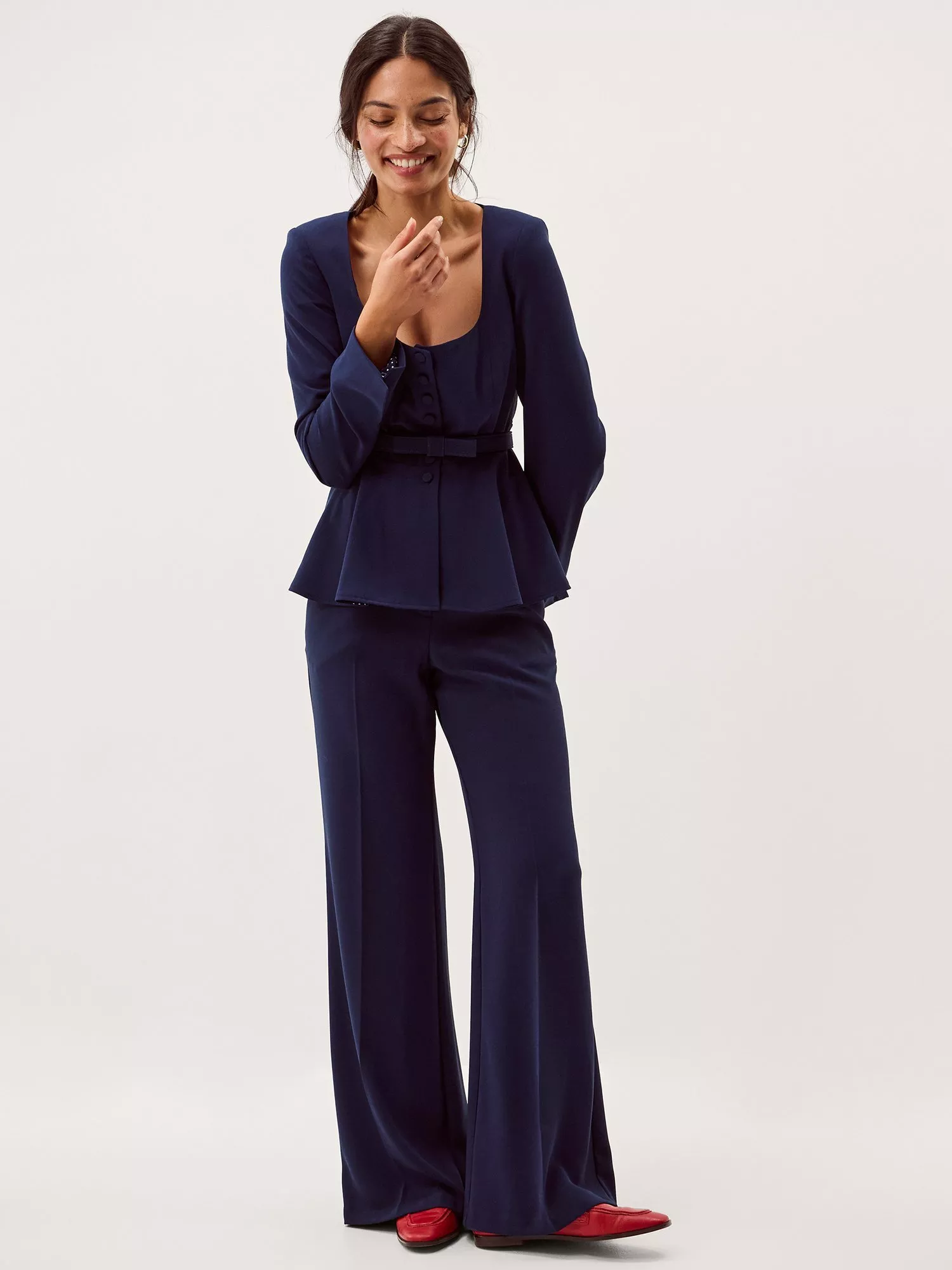 A pair of roomy loose-fitting trousers from Monsoon. They are designed to sit mid rise with a zip fastening.