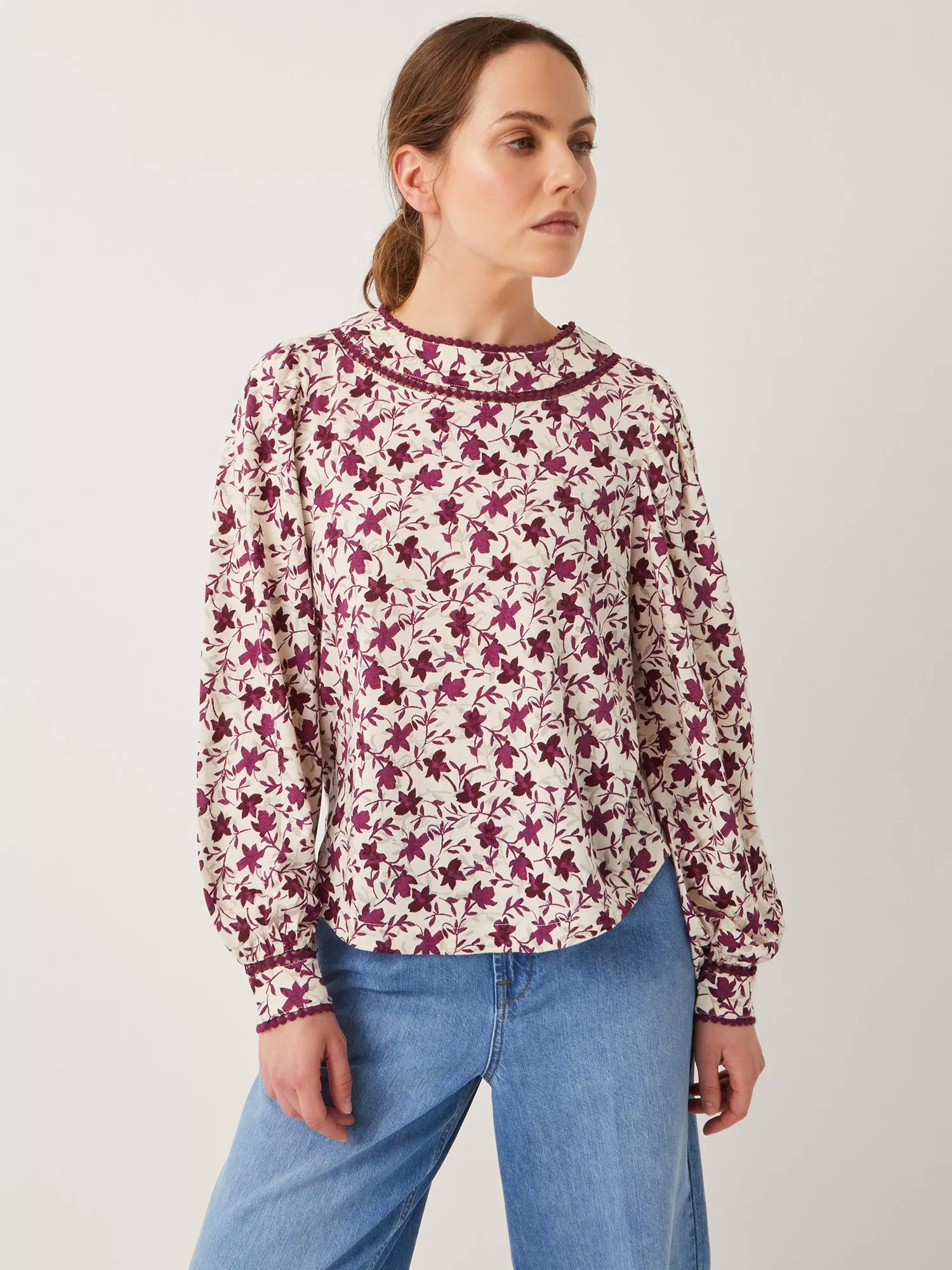 Florals for spring? Always. An artful addition to your wardrobe, this modest long-sleeved top is decorated with leafy vines and florals in a mix of hues. Finished with a back button fastening.