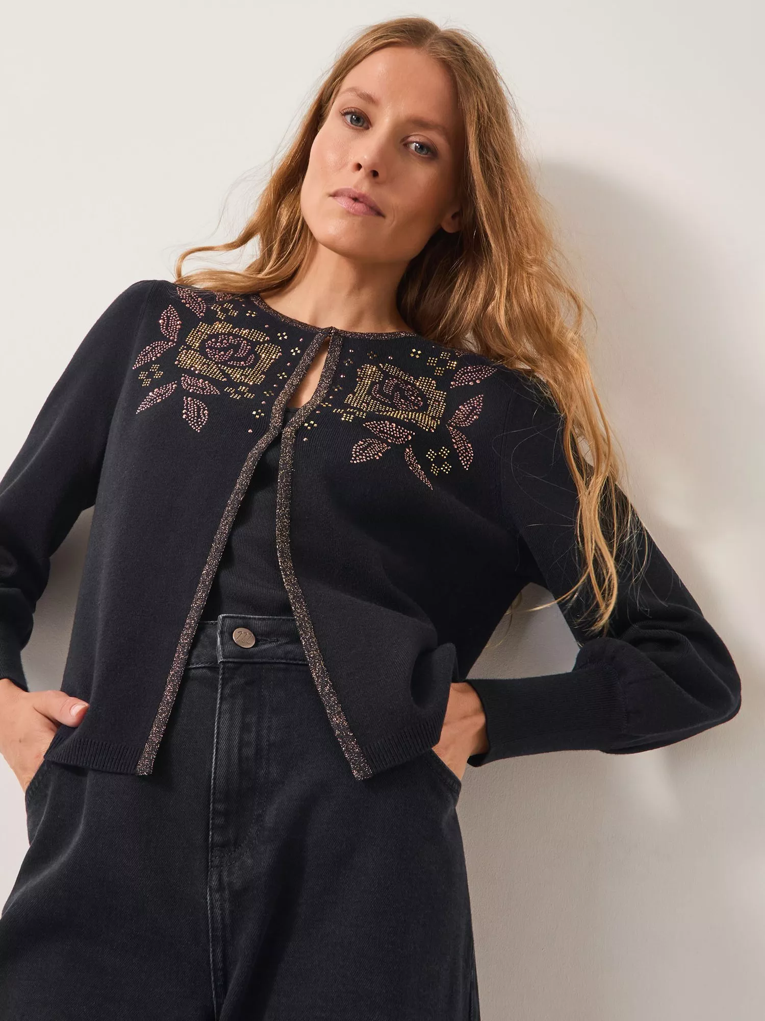 Neatly framed with a crew neckline, this lightweight cardigan by Monsoon is embellished for eye-catching appeal and is made with smooth, blended fabric for light and comfortable wear.