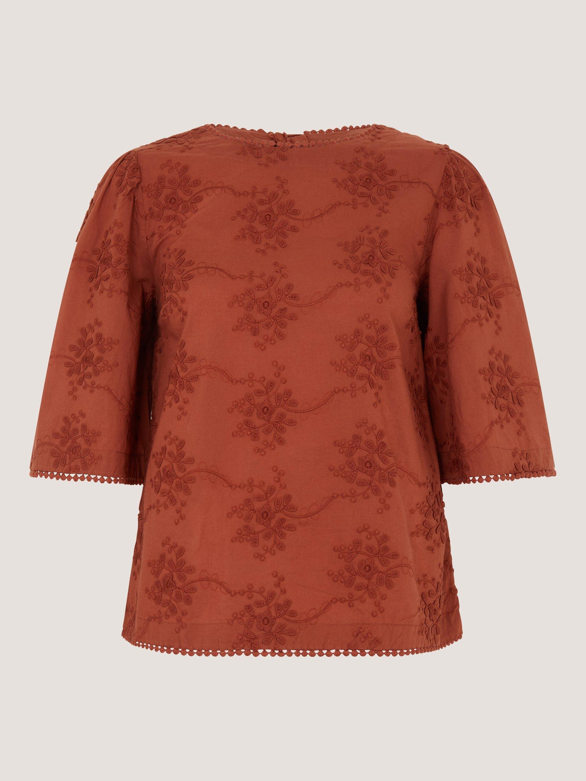 This embroidered floral top adds a clever twist to your daytime wardrobe. With elbow-length sleeves and a comfortable round neck, it's one for your everyday lineup.
