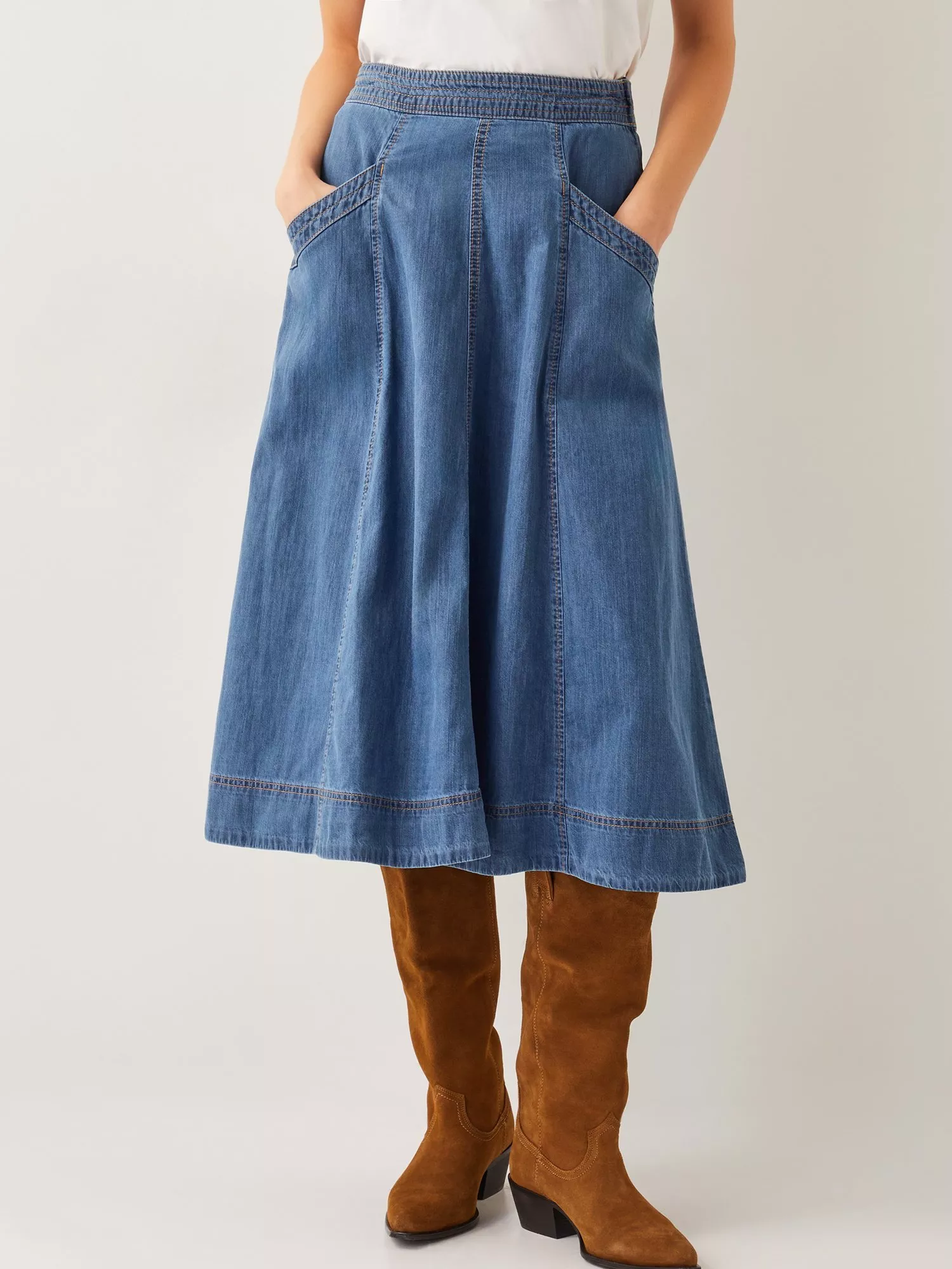 Inspired with a clean-lined profile, this denim midi skirt from Monsoon redefines your collection with the minimum of fuss.