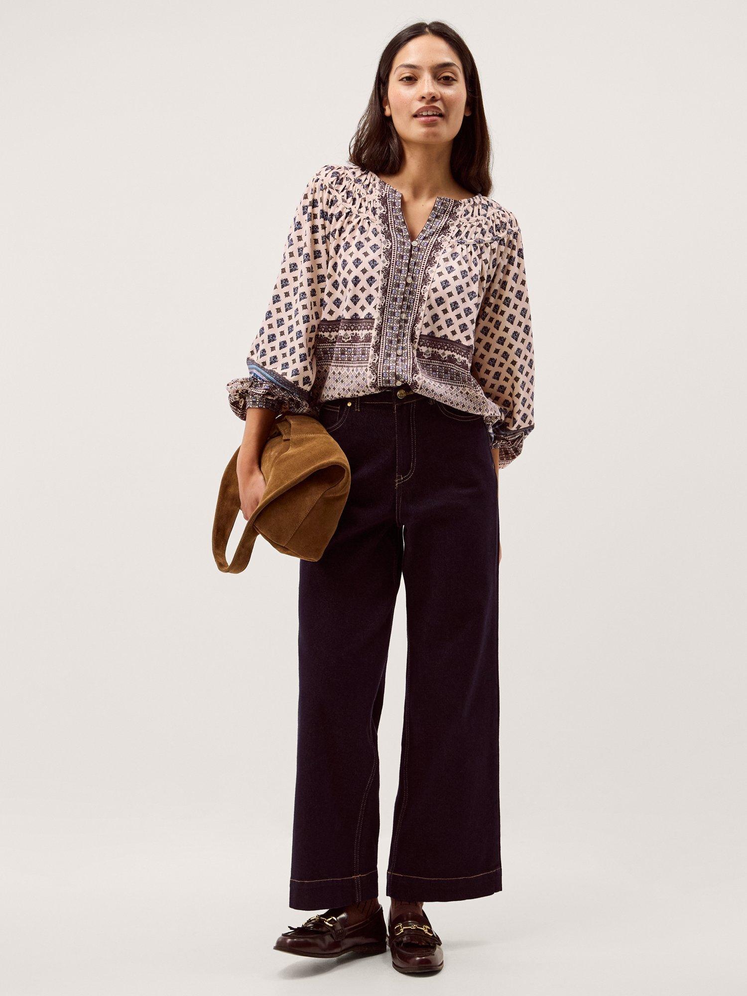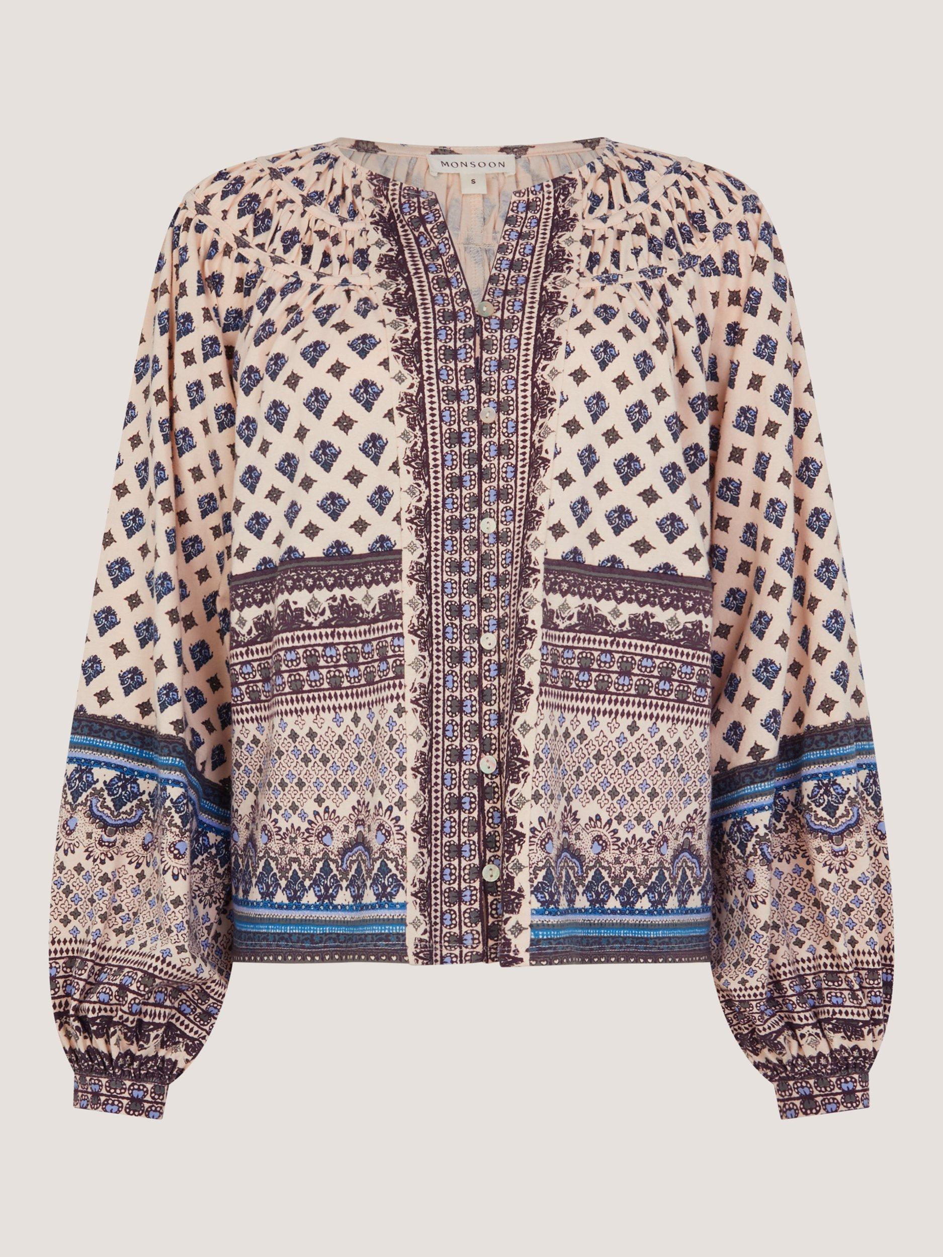 Printed with intricate florals and motifs, this blouse is primed for weekend-outfitting, whatever the day brings. Crafted with lightweight cotton, it's designed with smocked detailing around the neck and cuffed long sleeves. Just add denim and a creamy coffee.