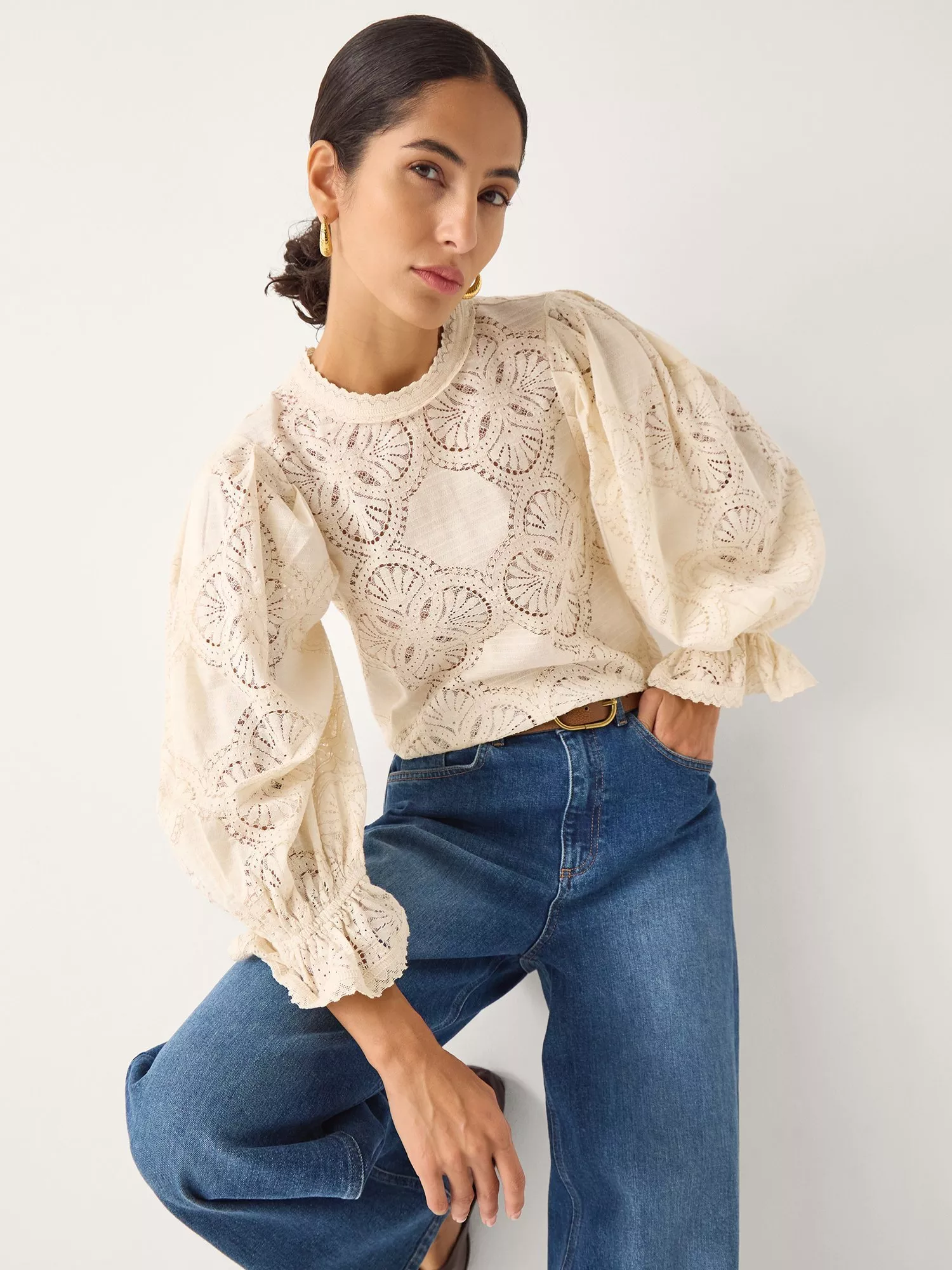 An effortless blouse from Monsoon, made from a soft cotton blend. With a round neck and long sleeves, it's detailed with pretty embroidery. One you'll reach for again and again.