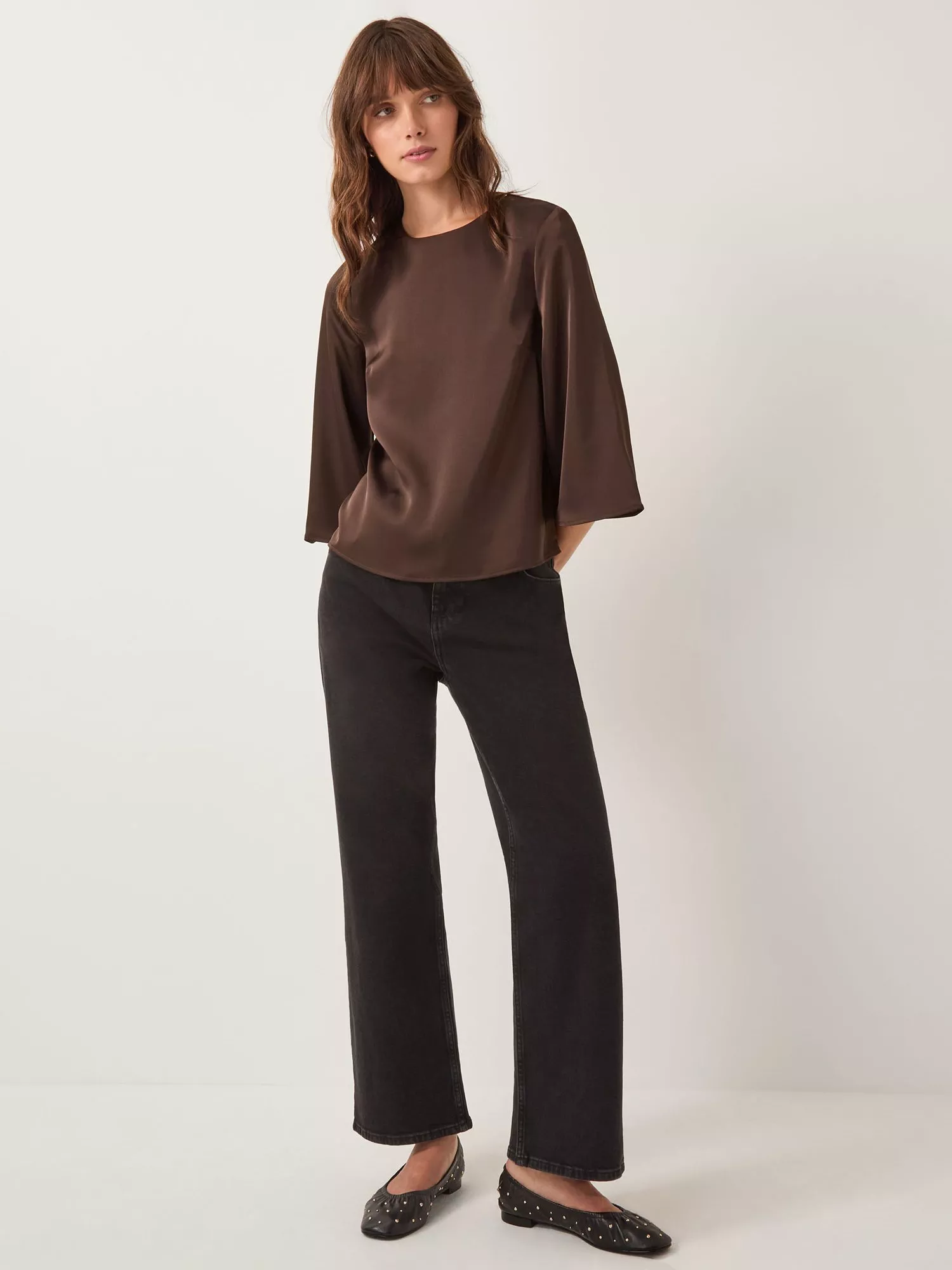 A relaxed-fit satin blouse from Monsoon. With a round neck and three-quarter length bell sleeves, it comes in an easily styled plain colouring. One you'll reach for again and again.