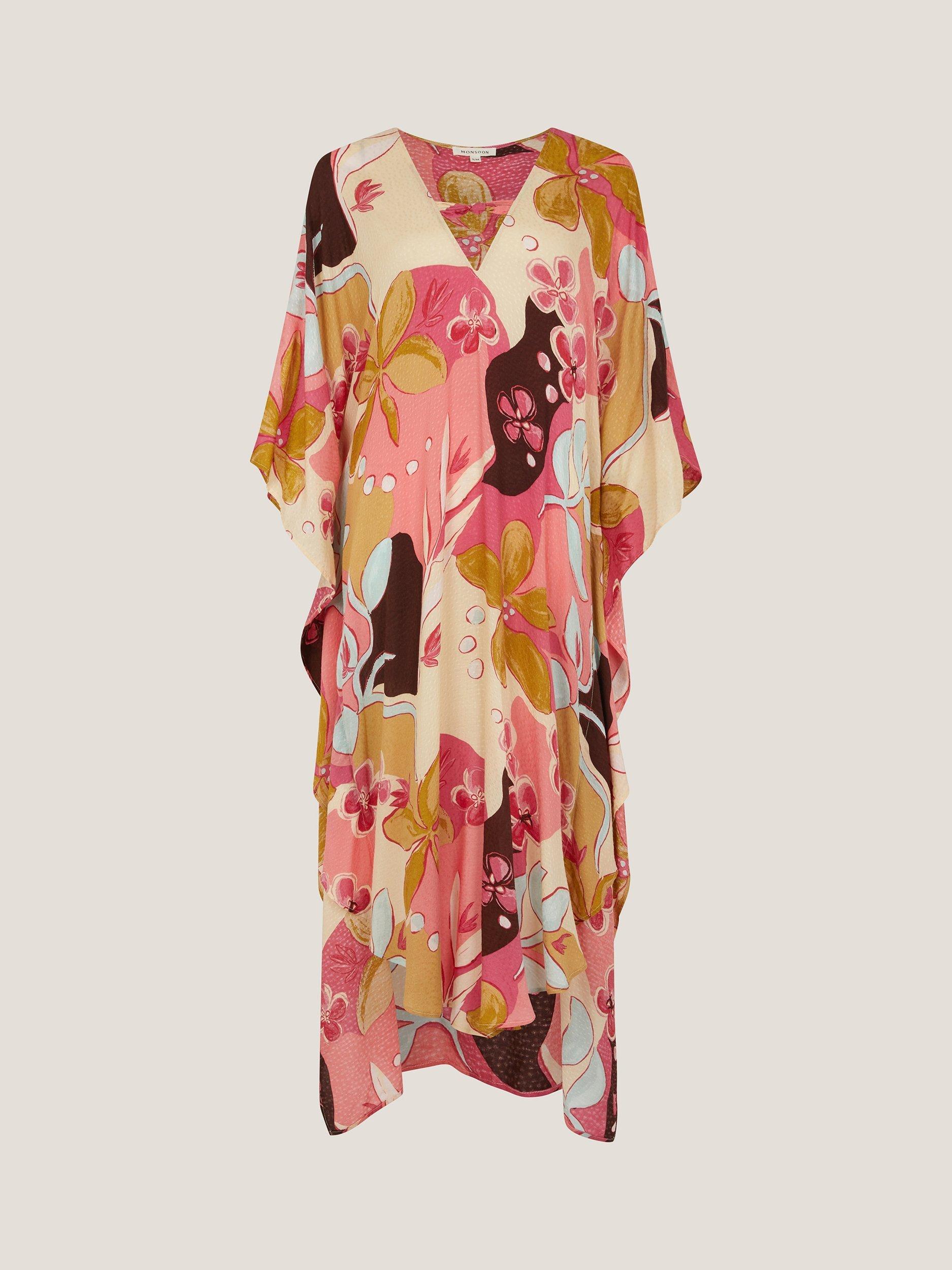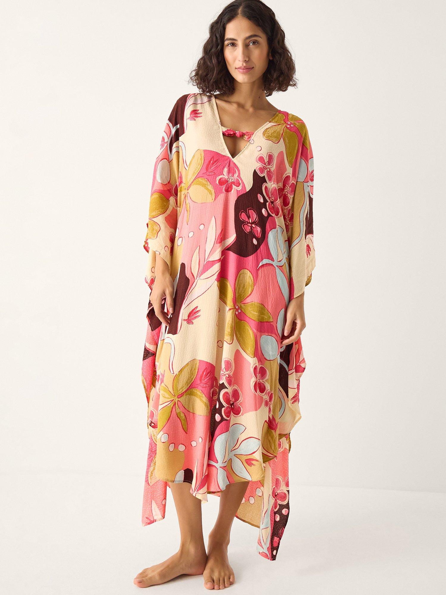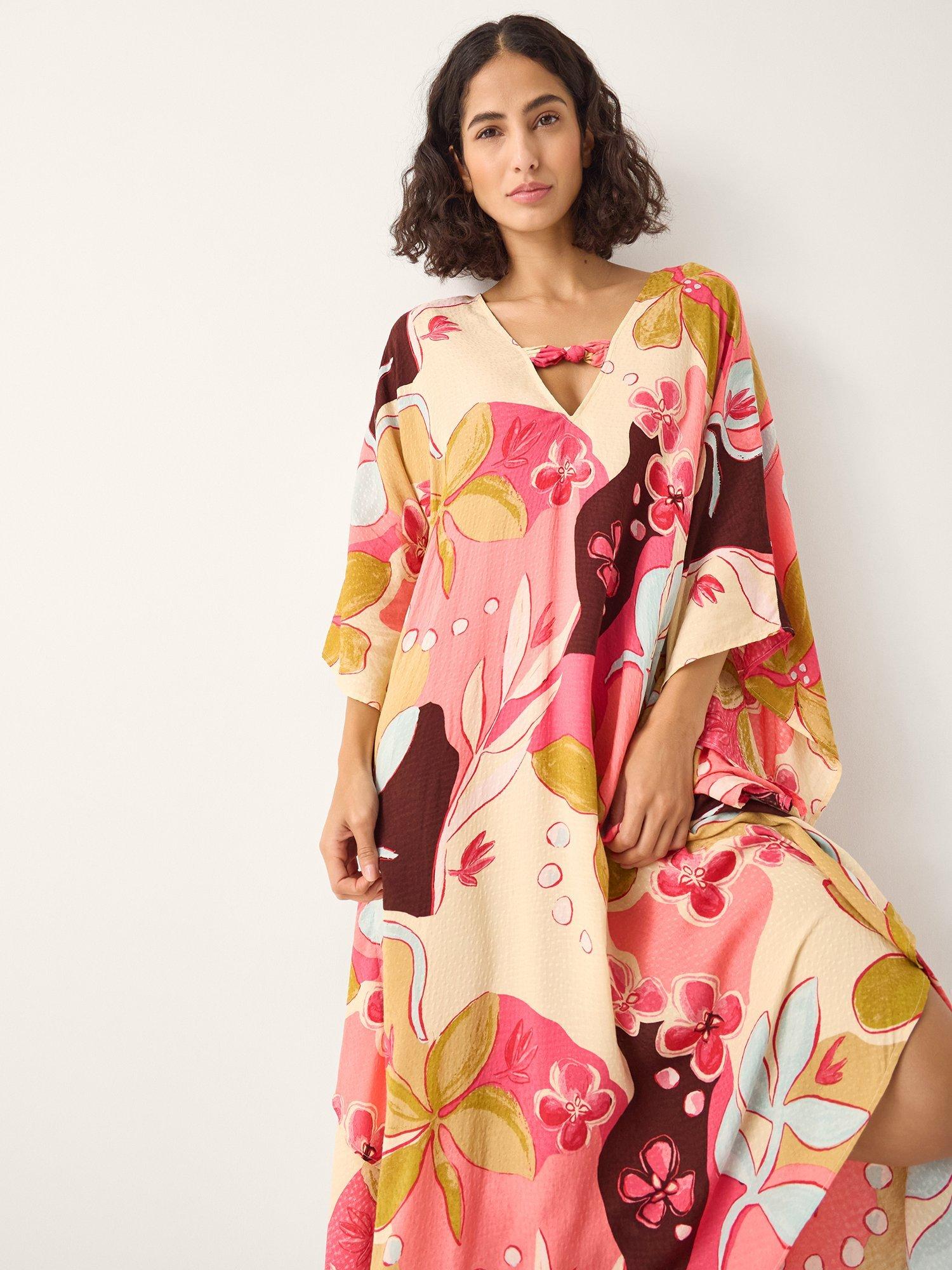 This maxi kaftan delivers a lively retro floral print and a flowing silhouette. Soft viscose keeps you comfortable all day, while three-quarter sleeves offer effortless style.