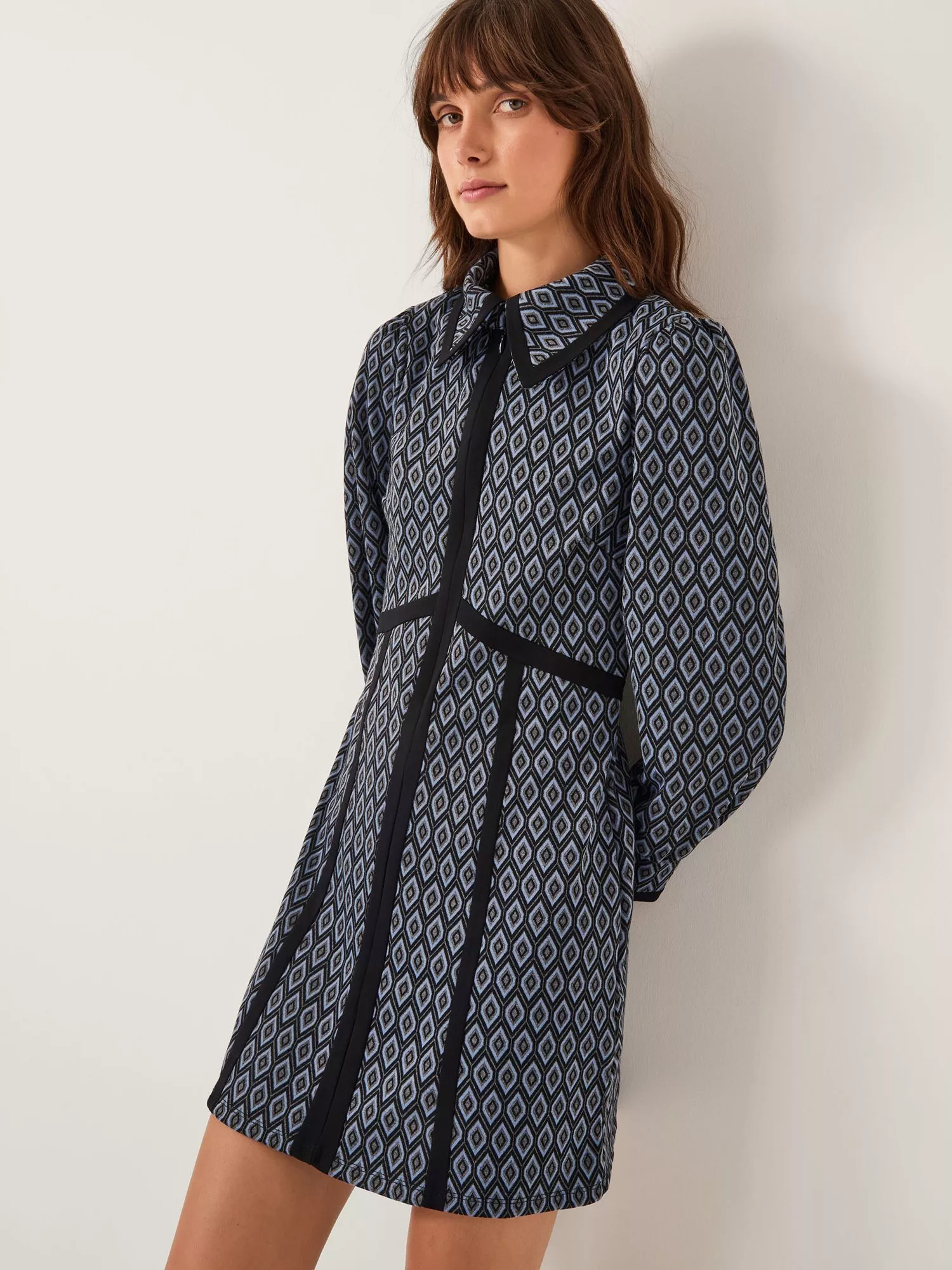 A shirt dress that's more suited to the bar than the boardroom. This long-sleeved mini dress from Monsoon features a collar neckline and boasts a jacquard effect for an elevated finish.